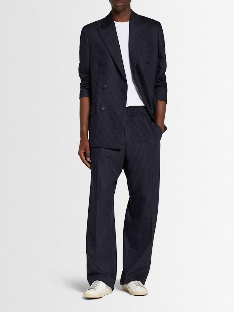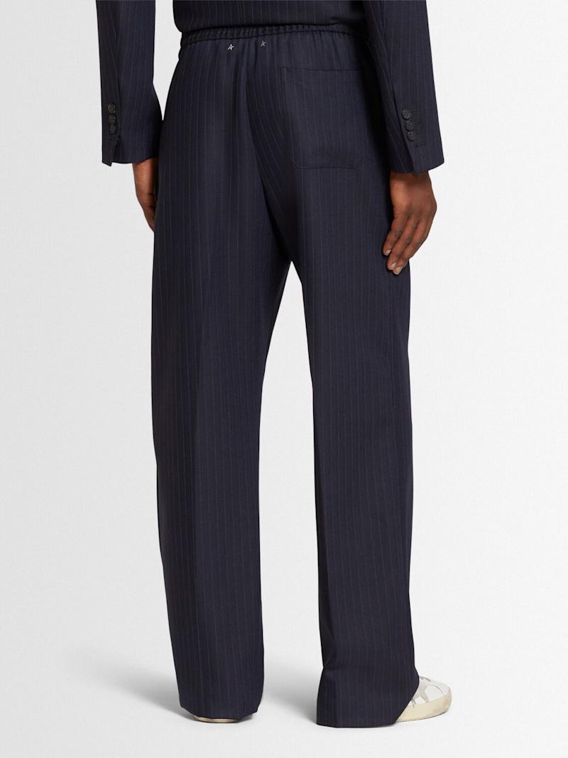 Journey条纹羊毛混纺阔腿裤 - 海军蓝 - 男士 - Golden Goose - 弹性腰头.
