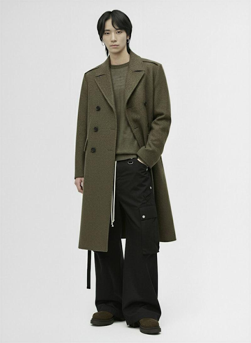 Officer羊毛长款大衣 - Bosco - 男士 - Rick Owens - 正面纽扣开合.