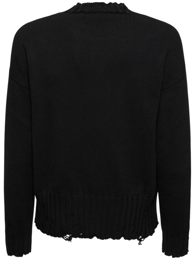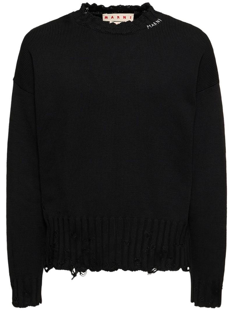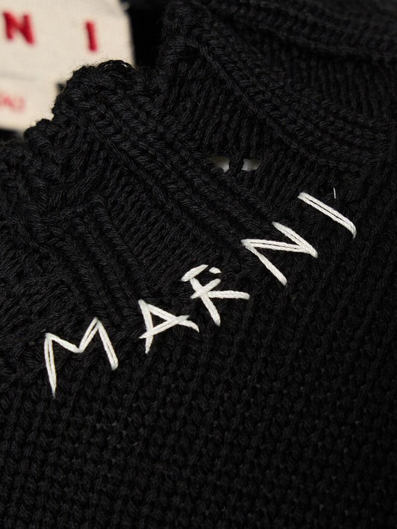 Logo棉质针织boxy版型毛衣 - 黑色 - 男士 - Marni - 罗纹领口、袖口和下摆.