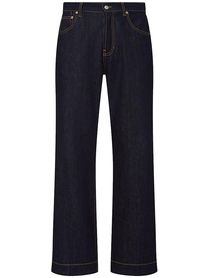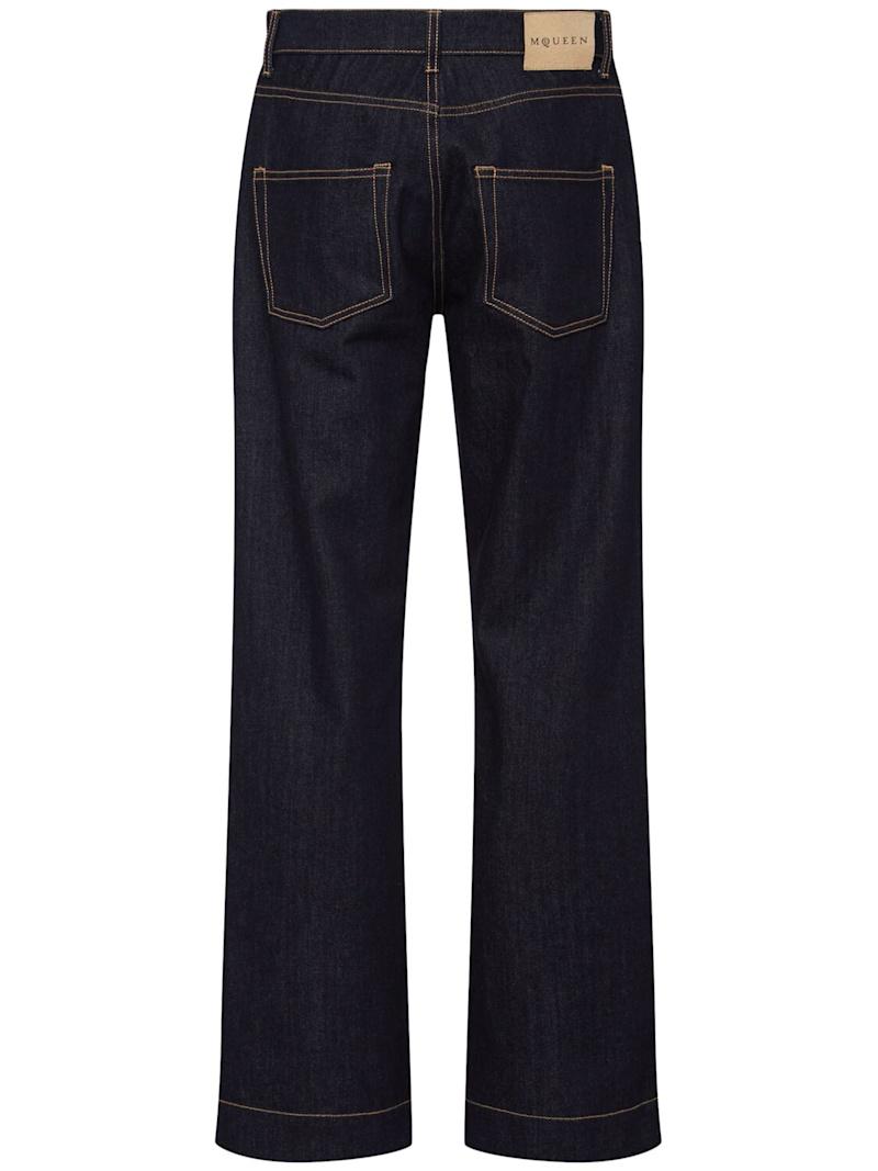 棉质阔腿牛仔裤 - 靛蓝色 - 男士 - McQueen - 正面纽扣和隐藏式拉链开合.