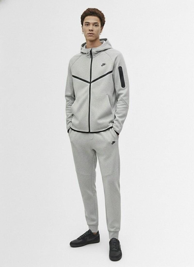 科技织物拉链开合卫衣 - Dk Grey Heather - 男士 - Nike - 不可拆卸的风帽.