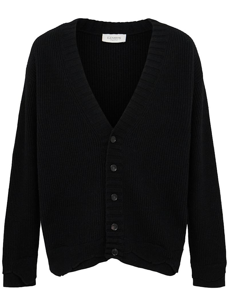 针织开衫 - Nero/Black - 男士 - Laneus - 正面纽扣开合.