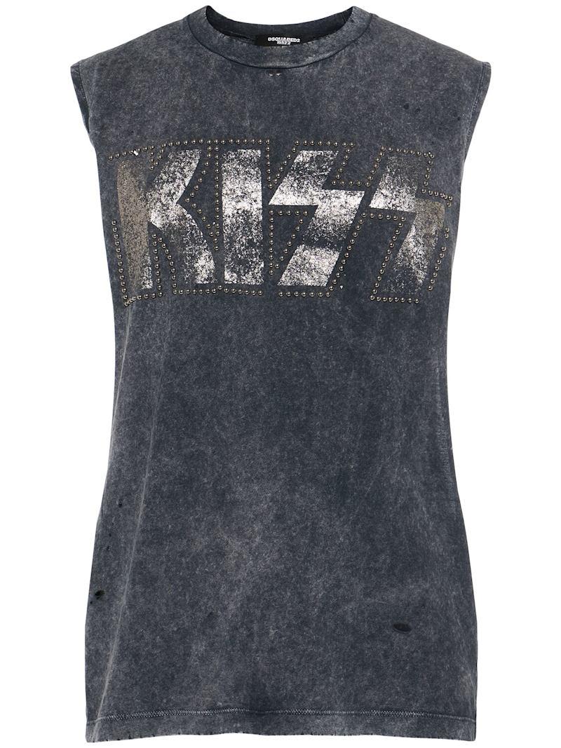 Kiss刺绣棉质背心 - 灰色 - 男士 - Dsquared2 - 圆领设计.