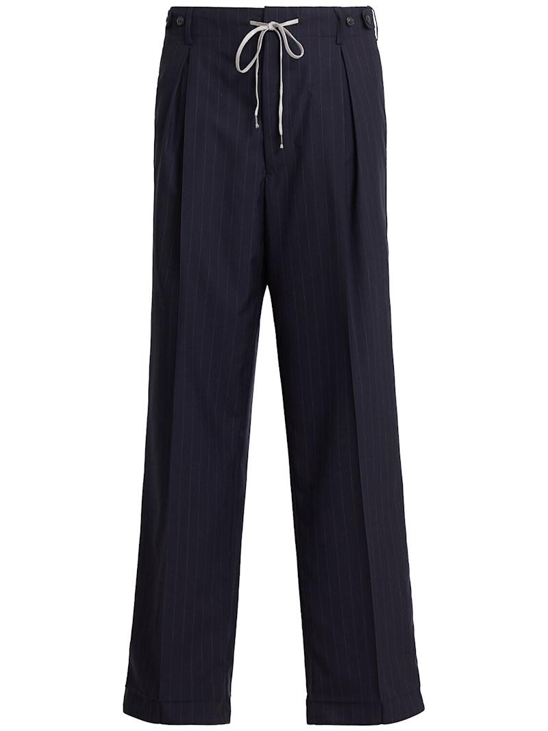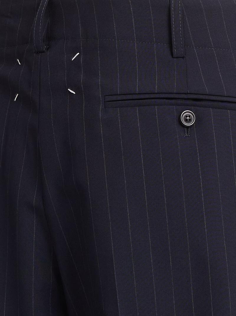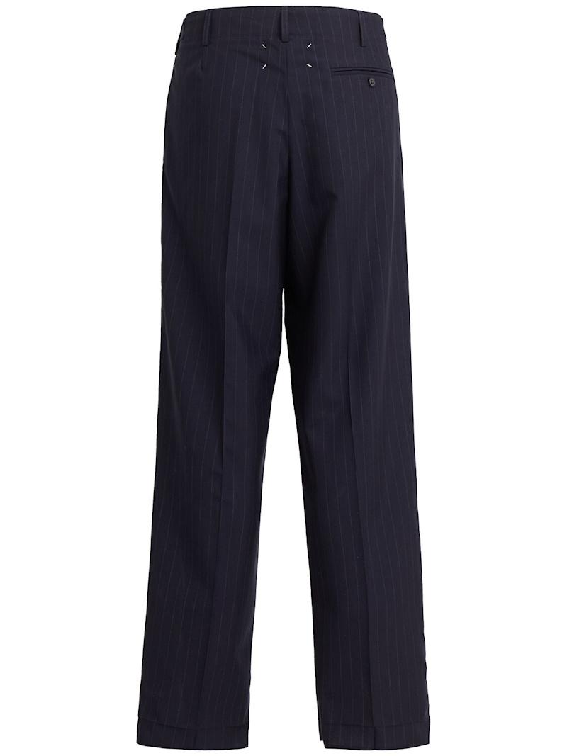 条纹羊毛裤子 - 蓝色 - 男士 - Maison Margiela - 正面抽绳开合.