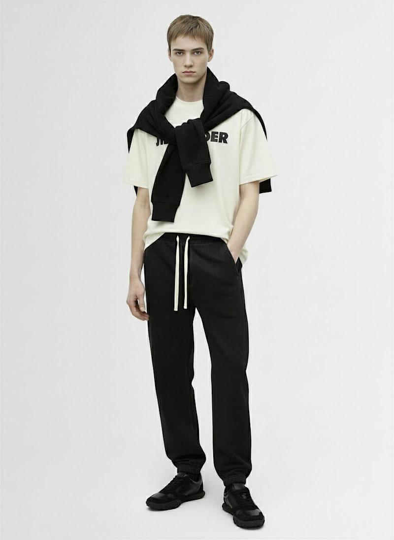 棉质毛巾布运动裤 - 黑色 - 男士 - Jil Sander - 抽绳弹力腰头.