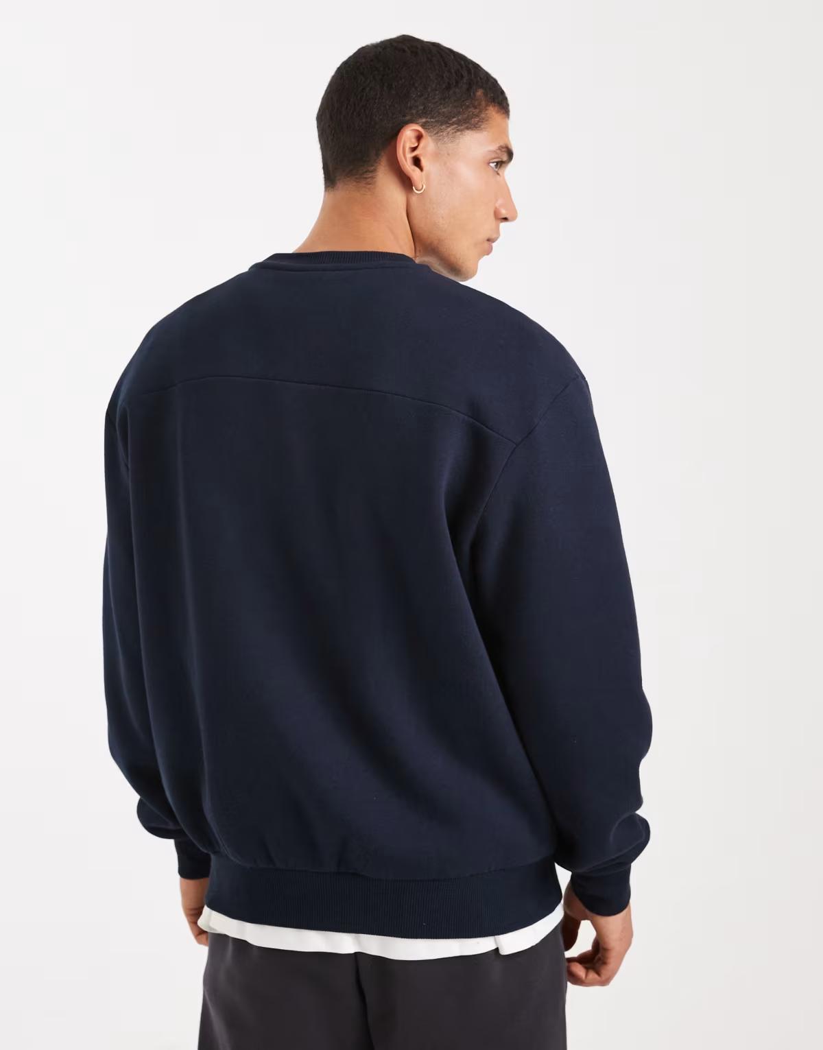 ASOS DESIGN relaxed fit sweatshirt with piping and sports number graphic in navy