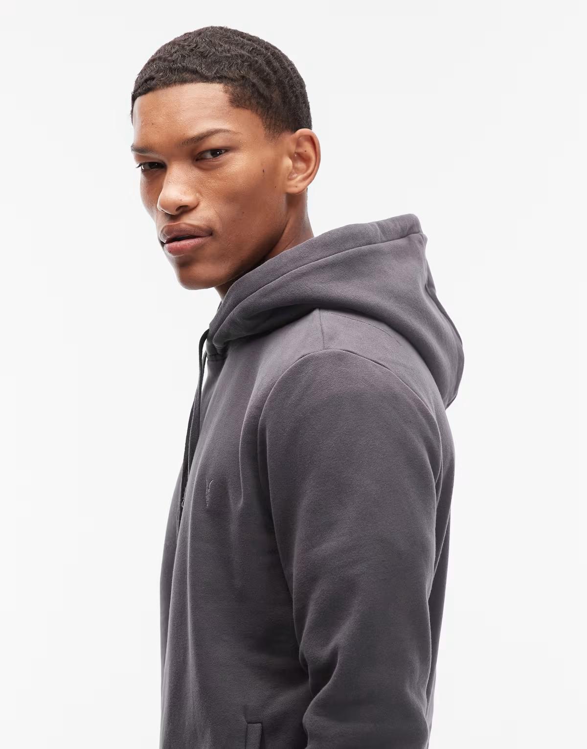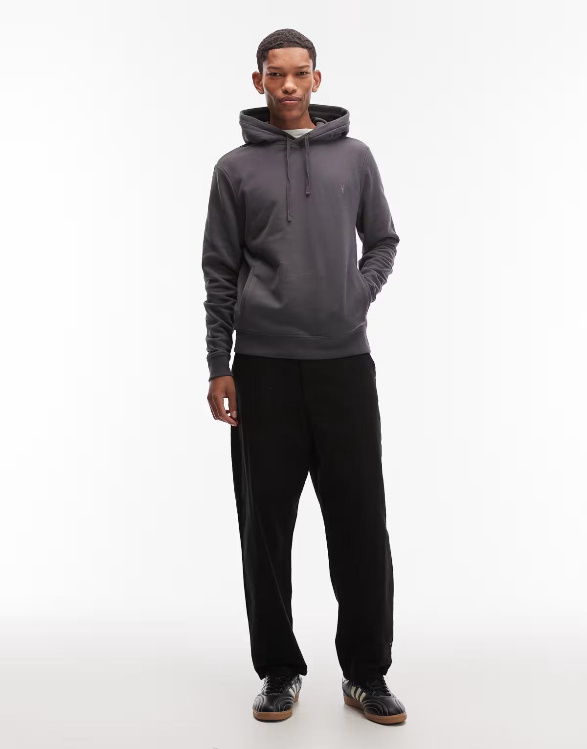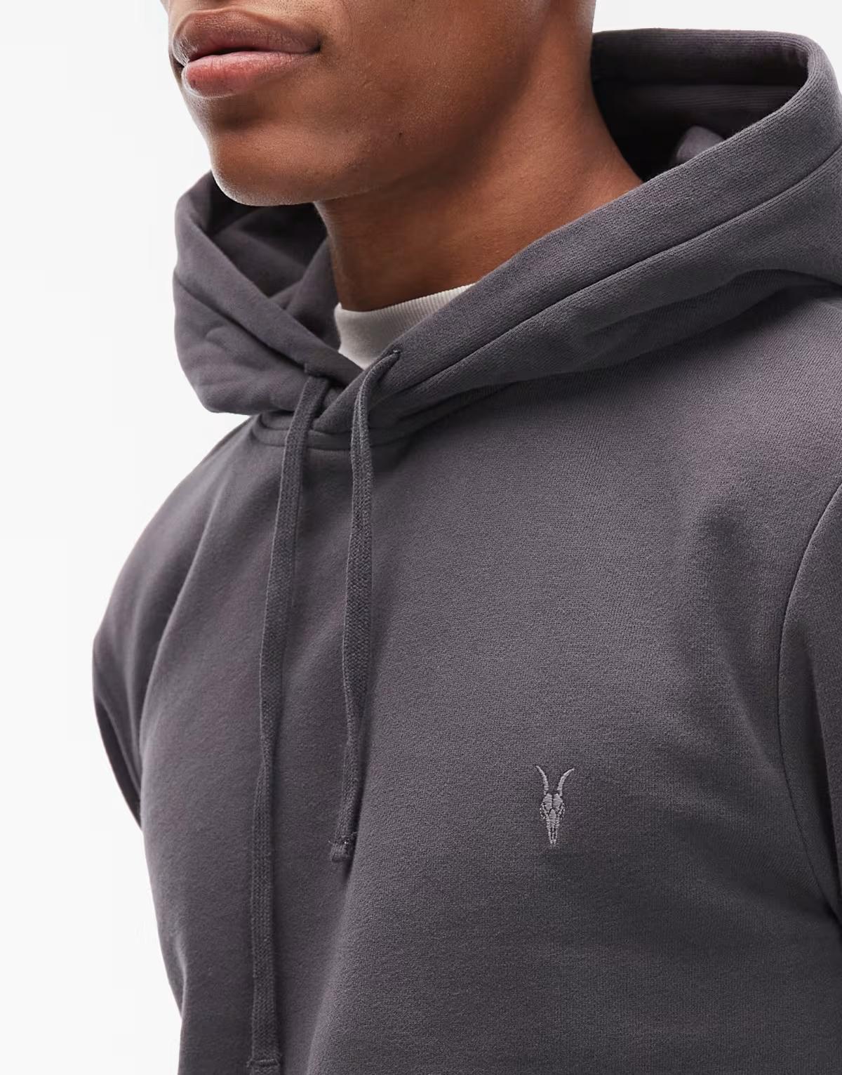 AllSaints Raven Oth logo hoodie in charcoal grey