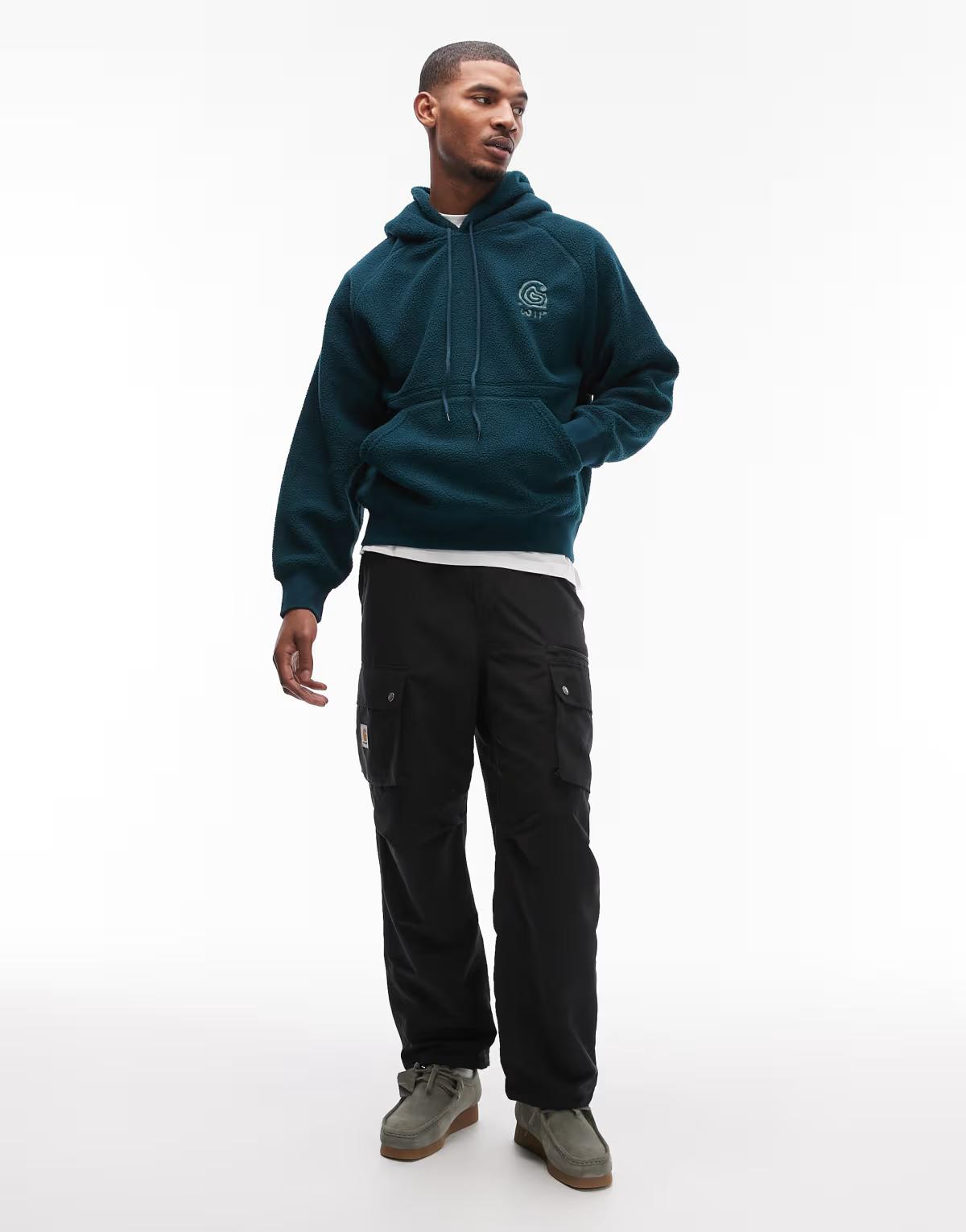Carhartt WIP helix fleece oversized pullover hoodie in dark green