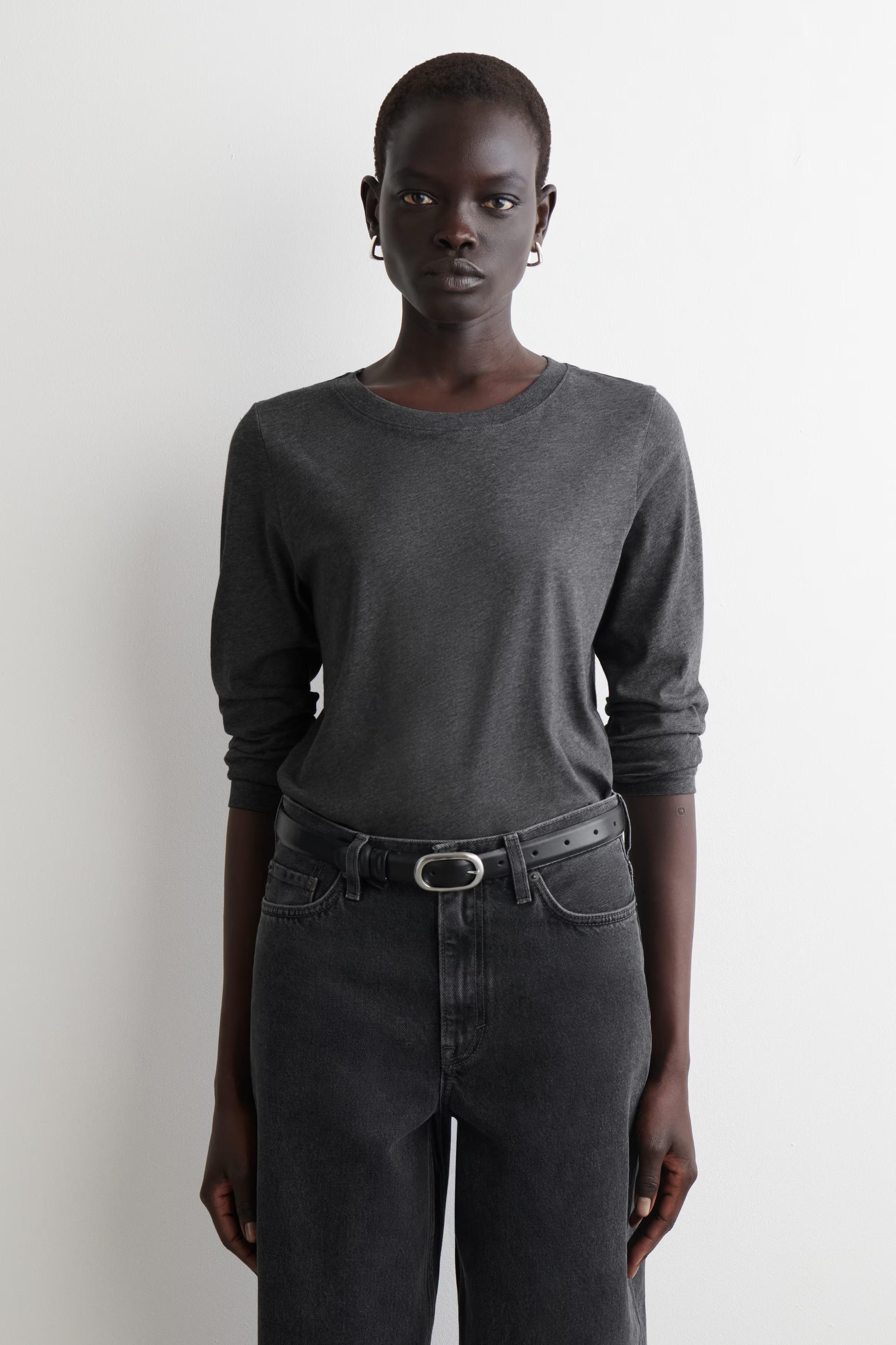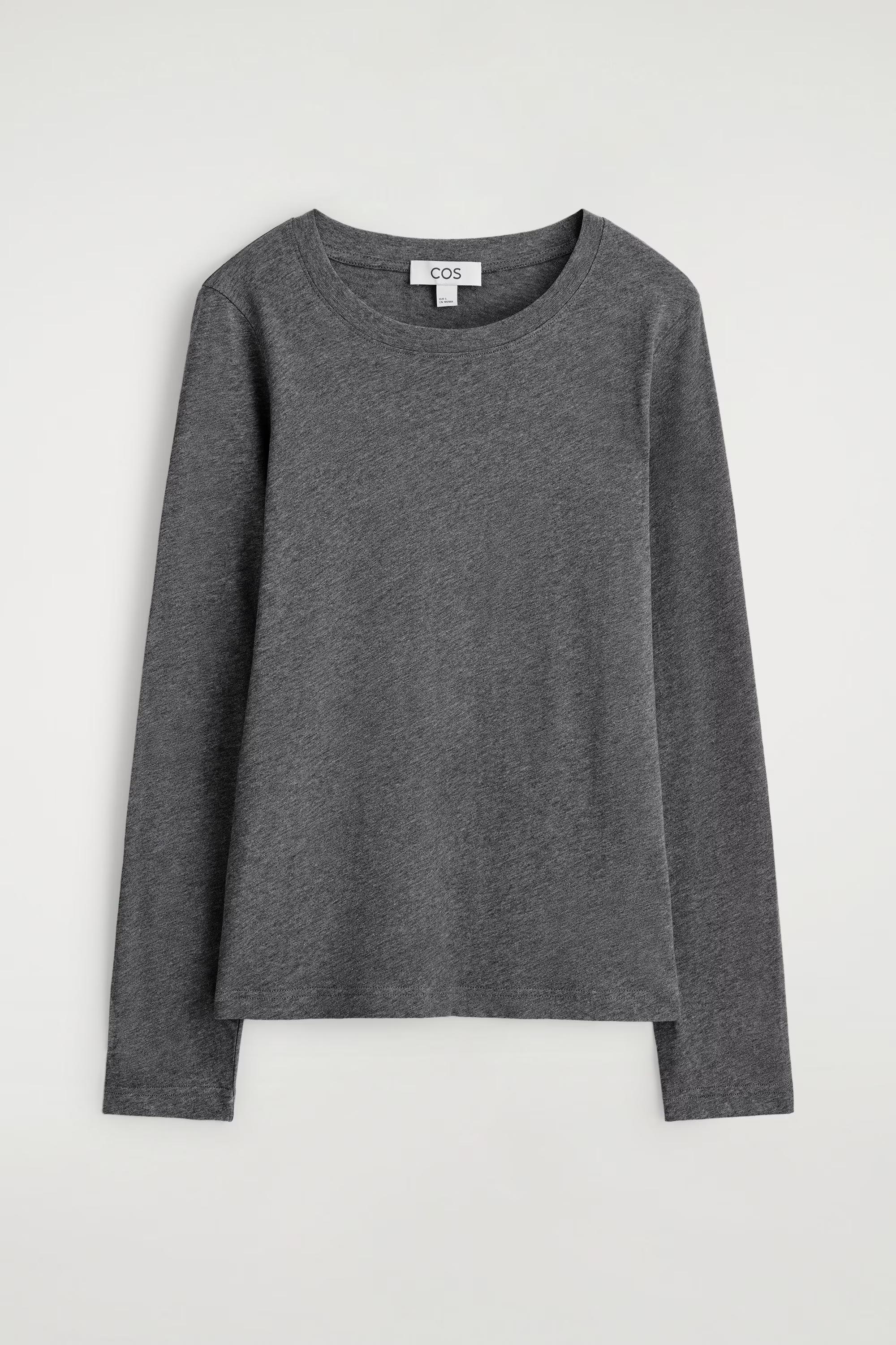 Quality T-shirts have been a cornerstone of the COS collection since day one. An understated essential, the 24/7 tee is made from soft organic-cotton jersey and comes in a vibrant bright-blue hue. Cut in a regular fit, it has a tightly ribbed round neck, long sleeves and neat topstitching at the edges.\u0026nbsp;Regular fit, 160gsmOrganic cotton is grown from non-genetically modified seeds without chemical fertilisers or pesticides\u0026nbsp;Shell: 100% Organic cotton. Excluding trims / Machine wash\u0026nbsp;Back length of size S is 61.7cm / Model wears a size S