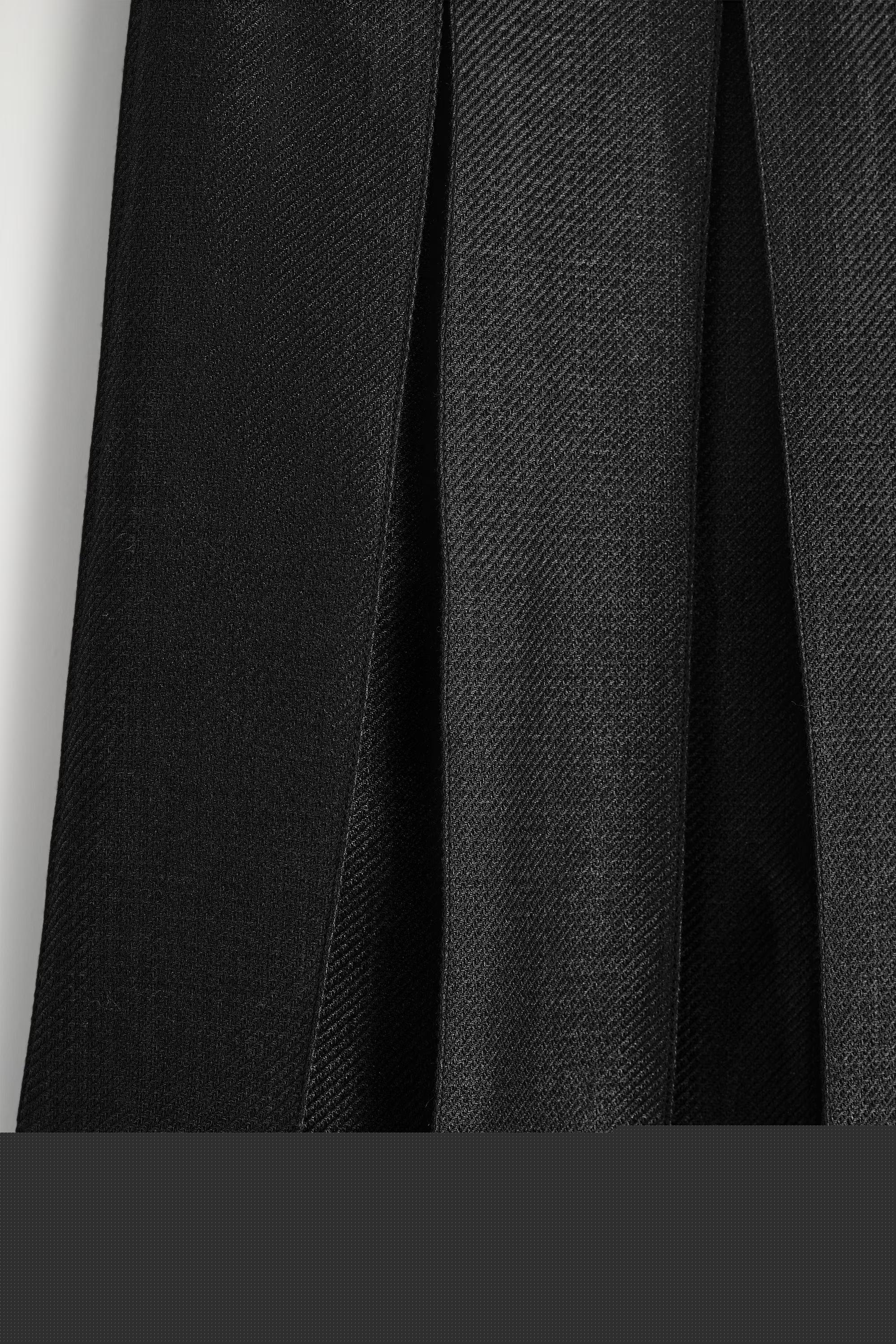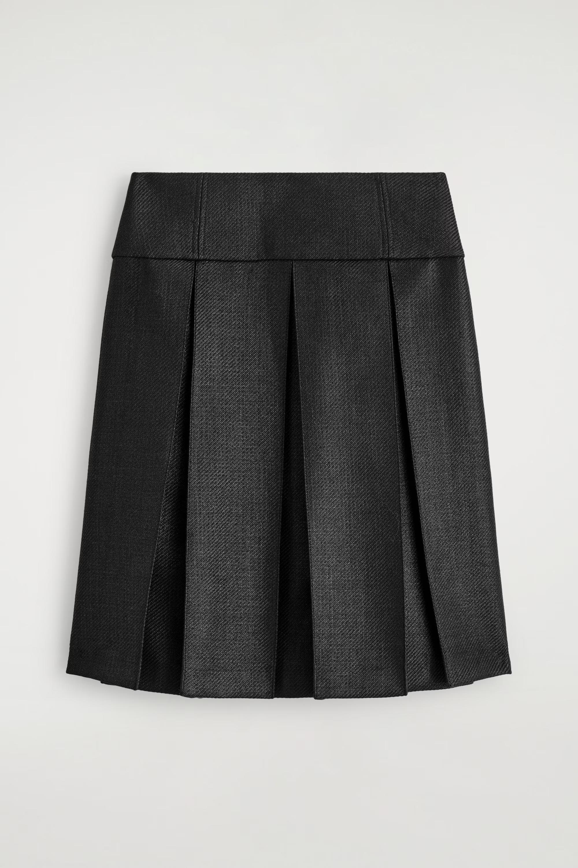 This season, the womenswear designers lean into the classic appeal of the pleated skirt. Crafted from a richly tactile wool blend, this piece is shaped with deep inverted box pleats and has an A-line silhouette that sits above the knee. Style it with a tonal knit.\u0026nbsp;Regular fitHook, eye and zip closureRecycled polyester is polyester made from PET bottles or end-of-life textile waste. The PET bottles or textile waste is mechanically recycled and processed into new yarn\u0026nbsp;Shell: 65% Recycled polyester, 35% RWS wool. Lining: 100% Viscose. Excluding trims / Machine wash\u0026nbsp;Back length of size EU 36 is 54cm / Model wears a size EU 36