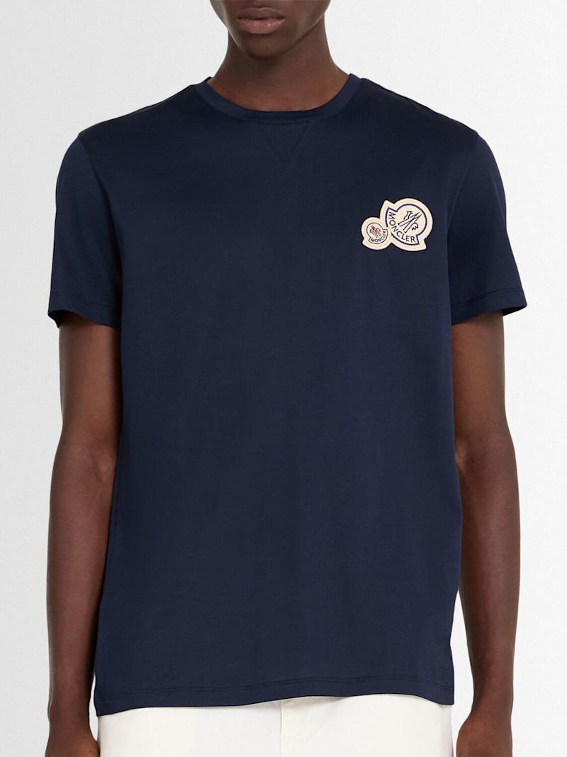 双logo贴片棉质T恤 - Very Navy - 男士 - Moncler - 采用棉质平纹织物制作.