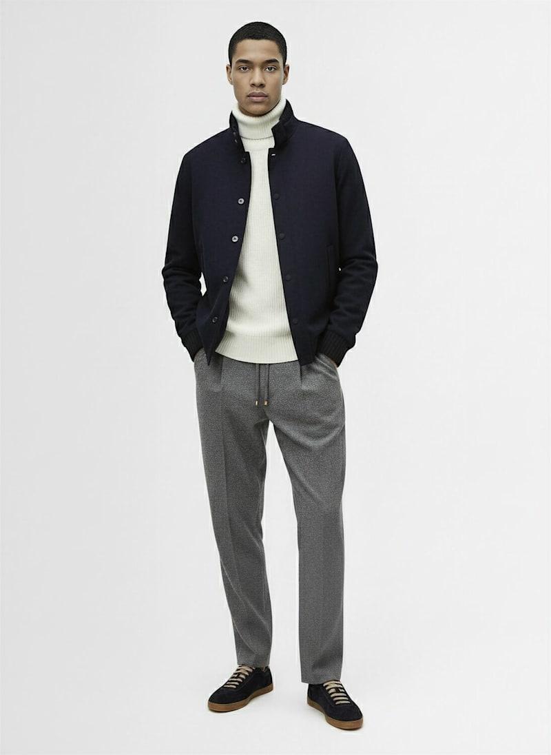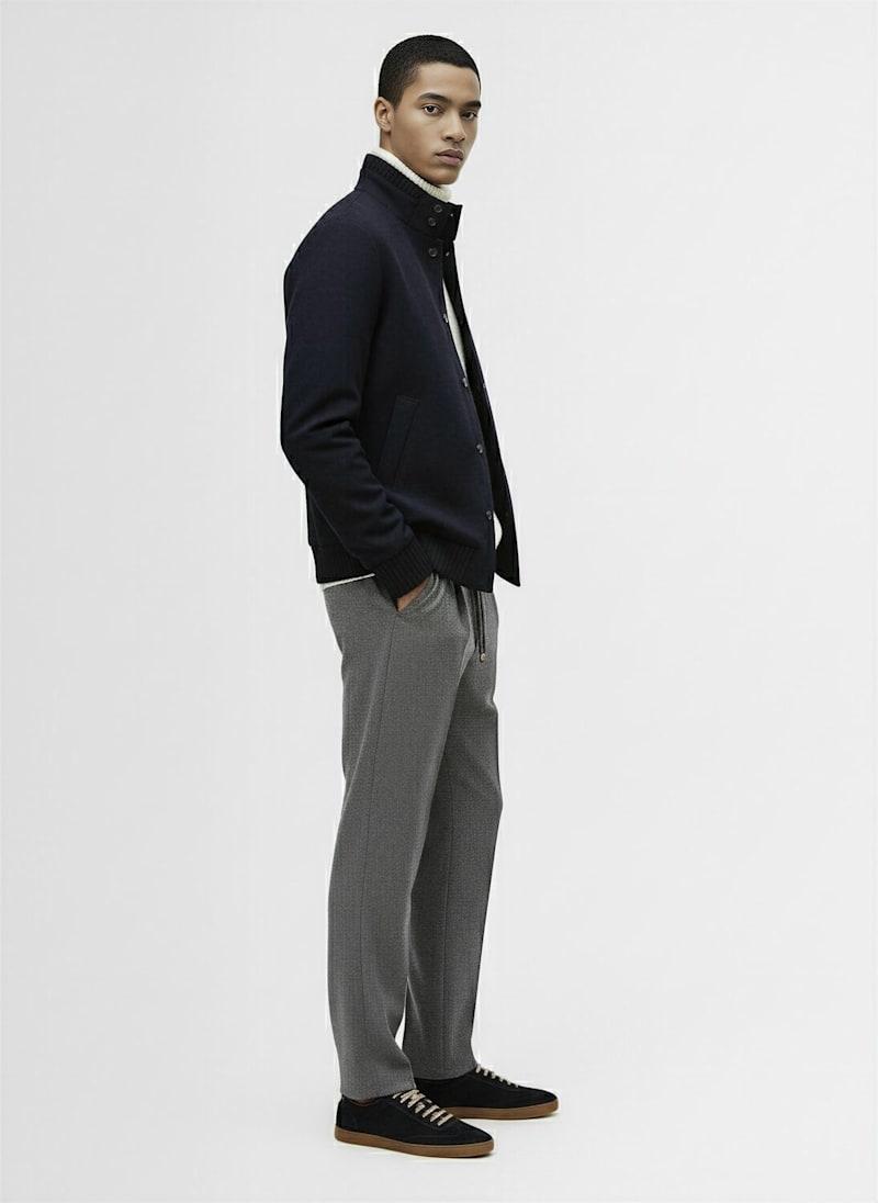 Ronde 2羊绒休闲夹克 - 蓝色 - 男士 - Kired - 正面纽扣开合.