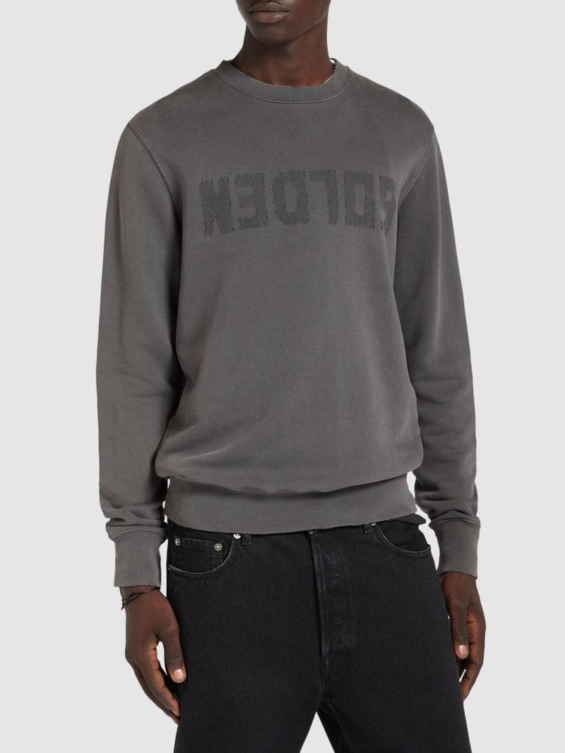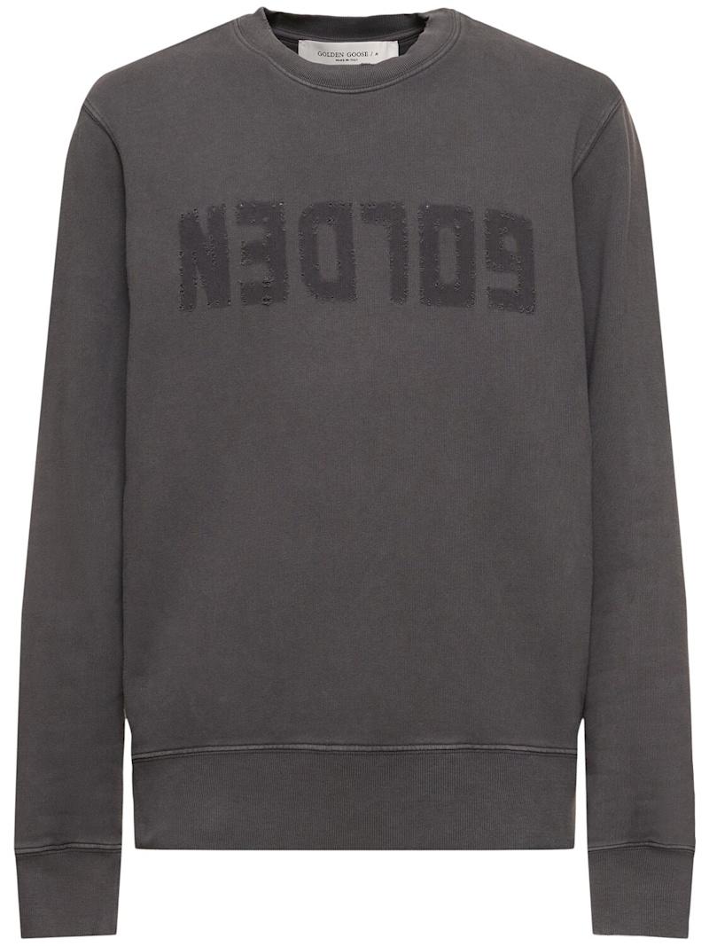 Logo棉质平纹针织圆领卫衣 - 炭灰色 - 男士 - Golden Goose - 罗纹边缘.