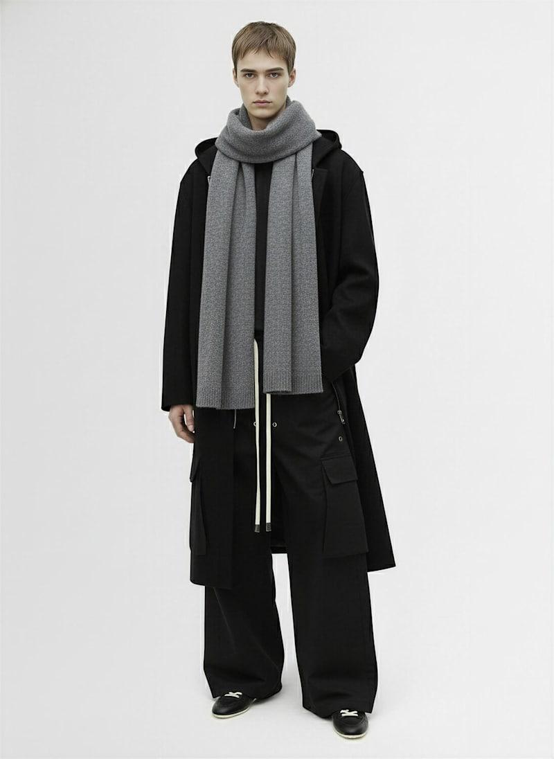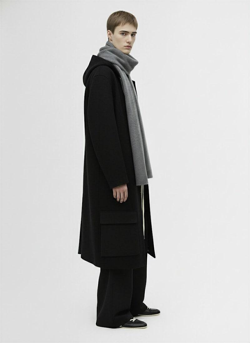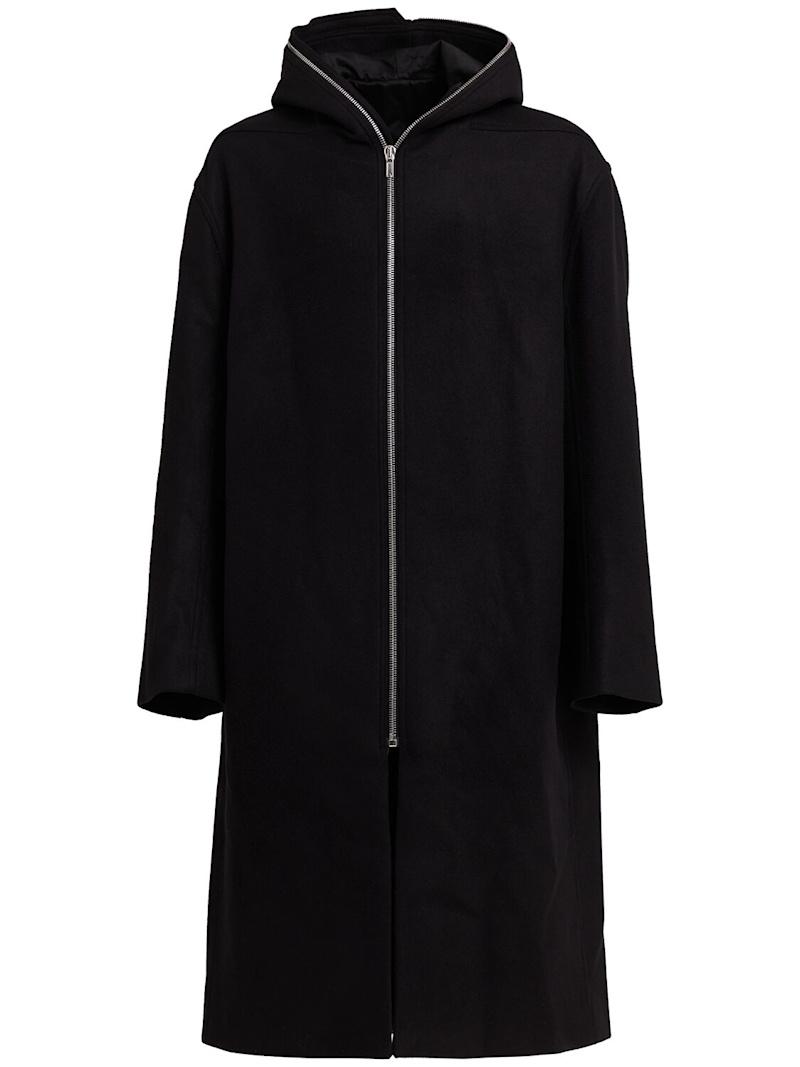Gimp连帽羊毛长款大衣 - 黑色 - 男士 - Rick Owens - 不可拆卸的风帽.