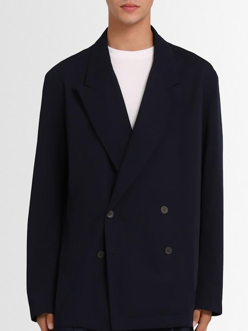 Caplan双排扣棉质西服夹克 - 海军蓝 - 男士 - Dries Van Noten - 正面纽扣开合
