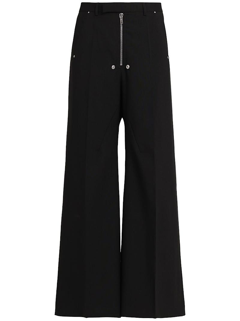 精裁羊毛阔腿裤 - 黑色 - 男士 - Rick Owens - 正面拉链开合.