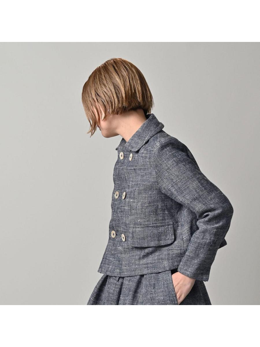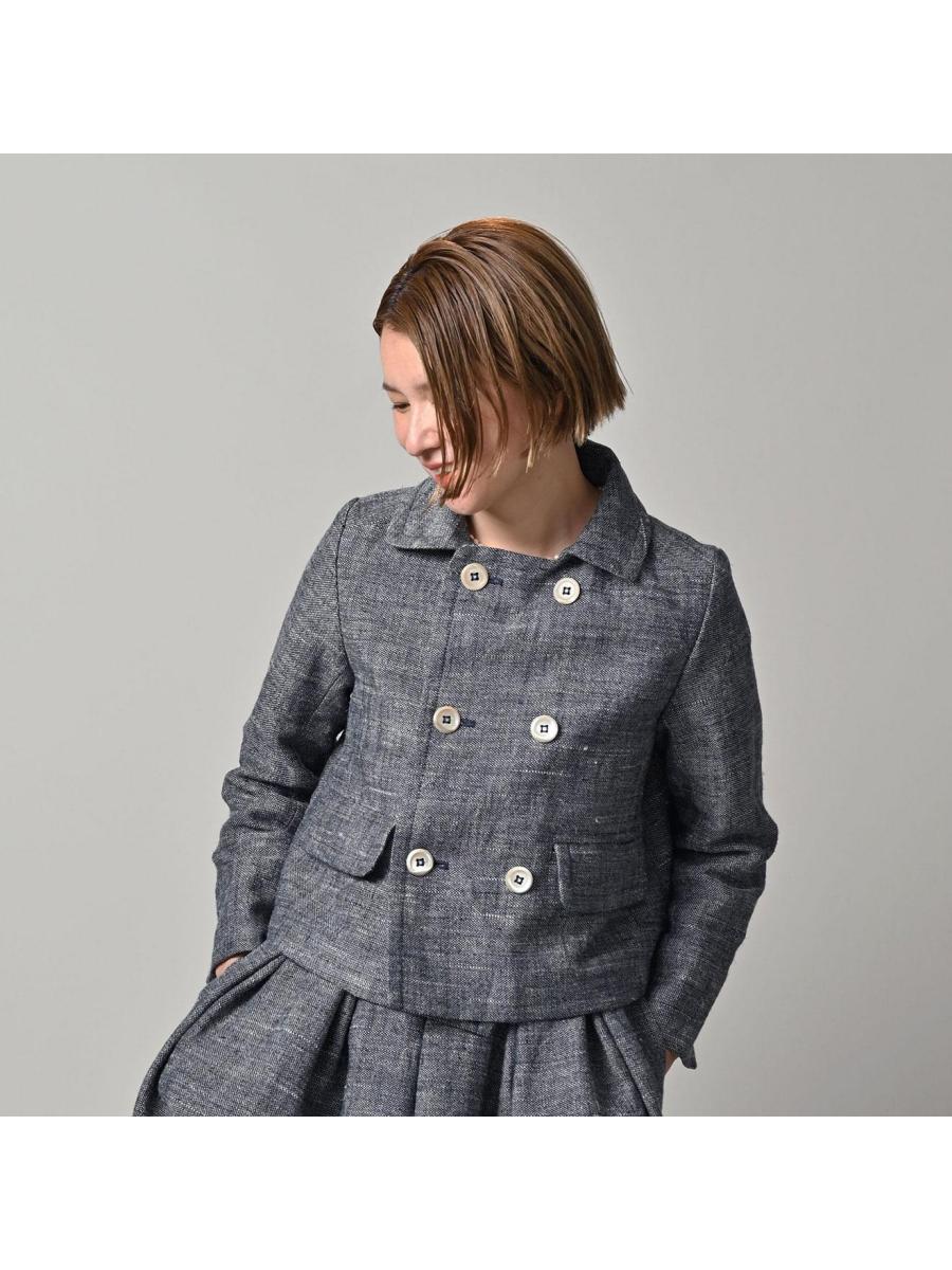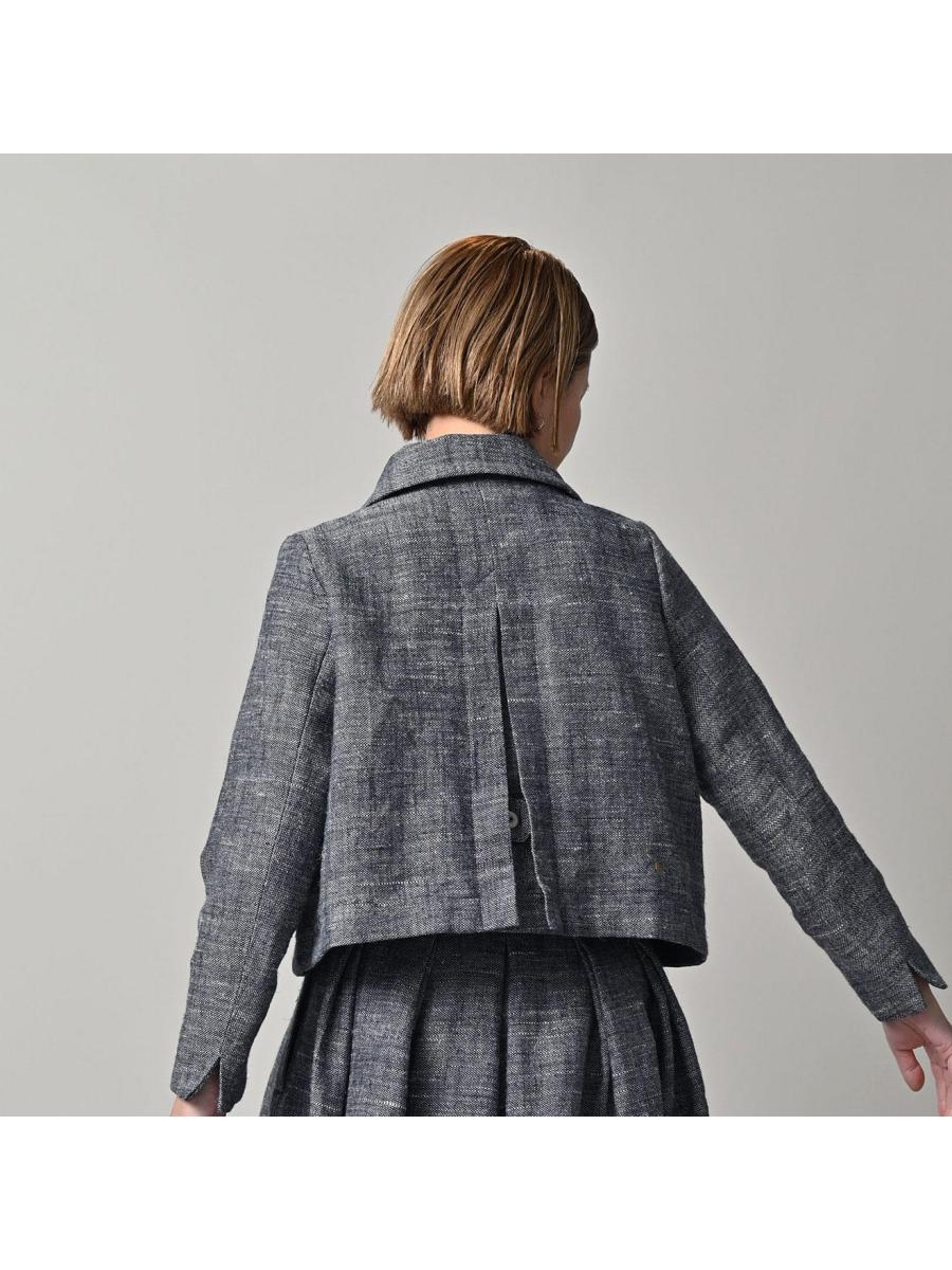 綿麻ツイードのアニーミニジャケット(インディゴ)