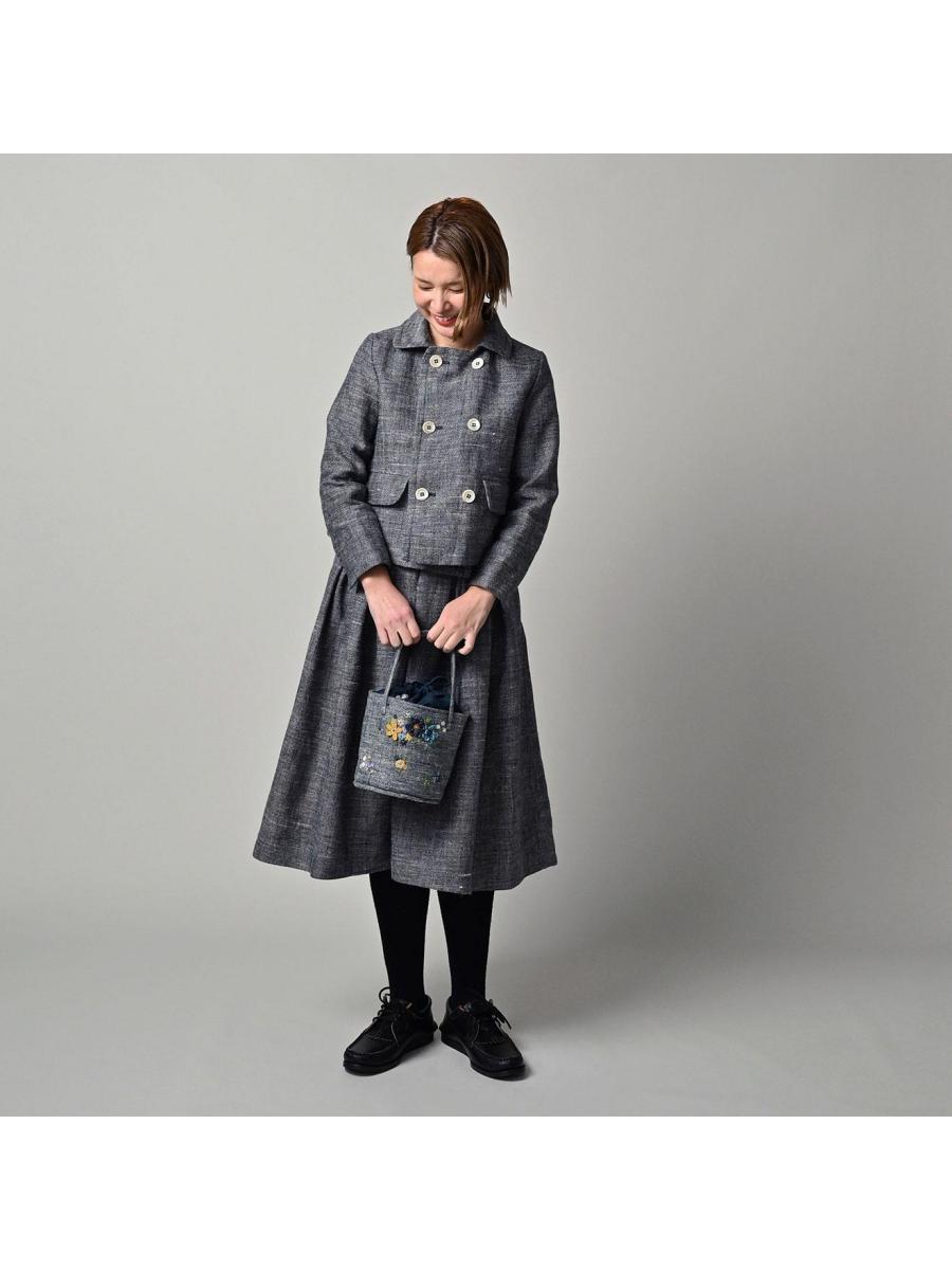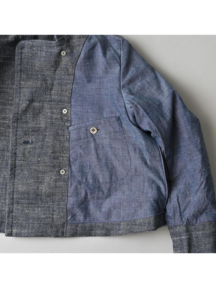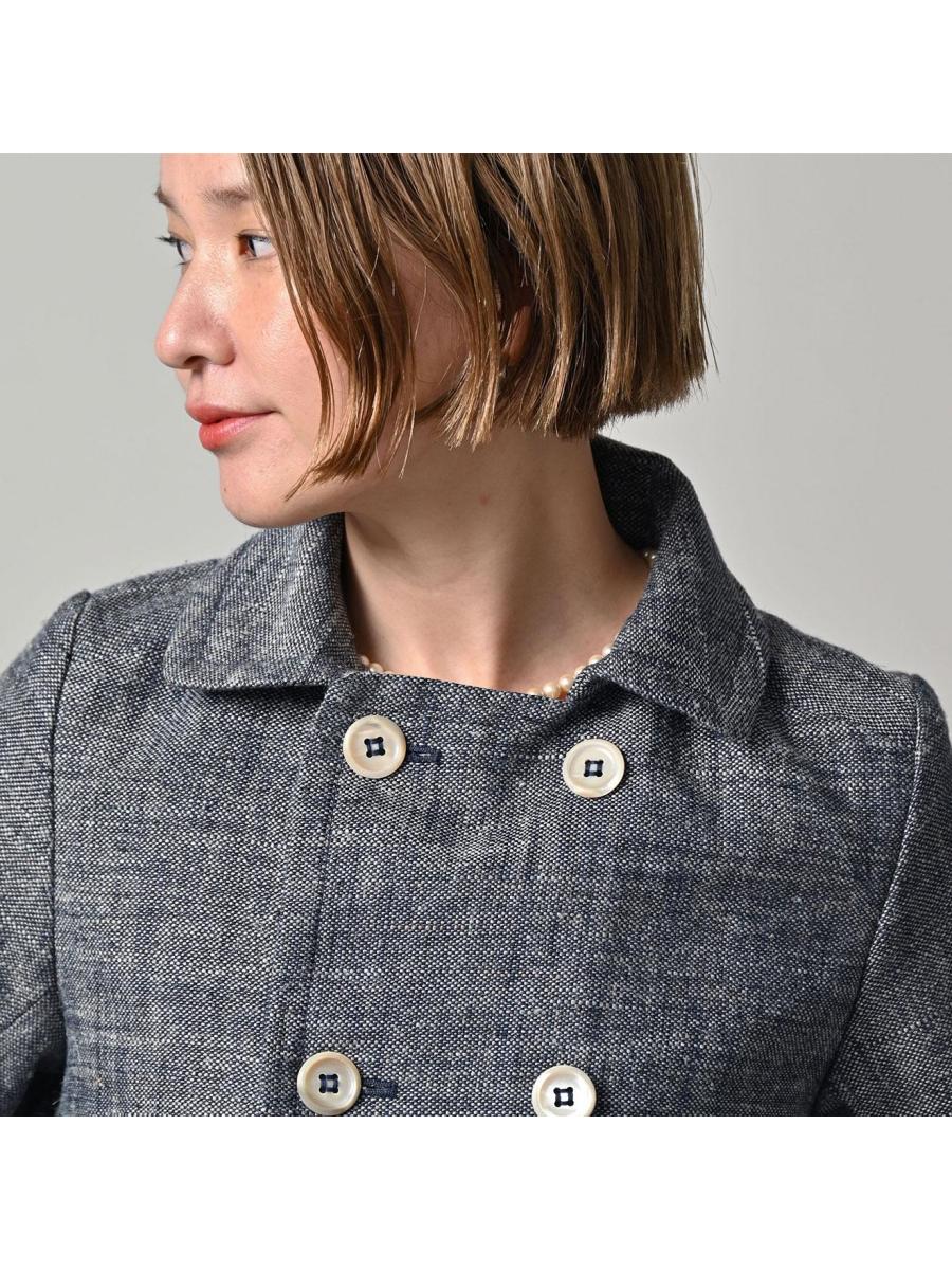 綿麻ツイードのアニーミニジャケット(インディゴ)