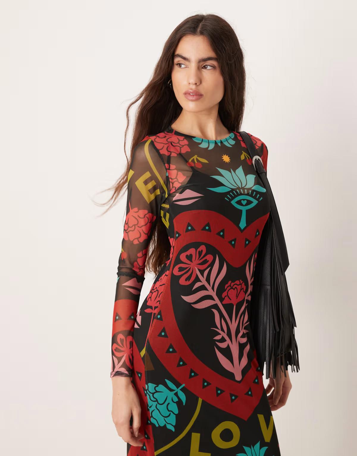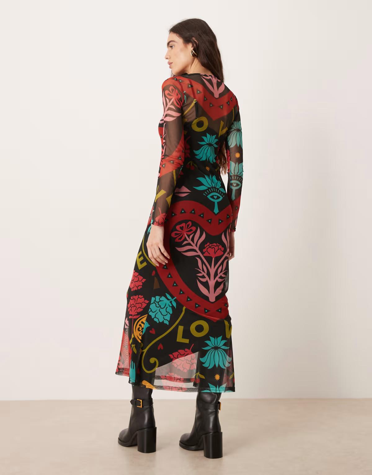 Never Fully Dressed mesh maxi dress in bright abstract print