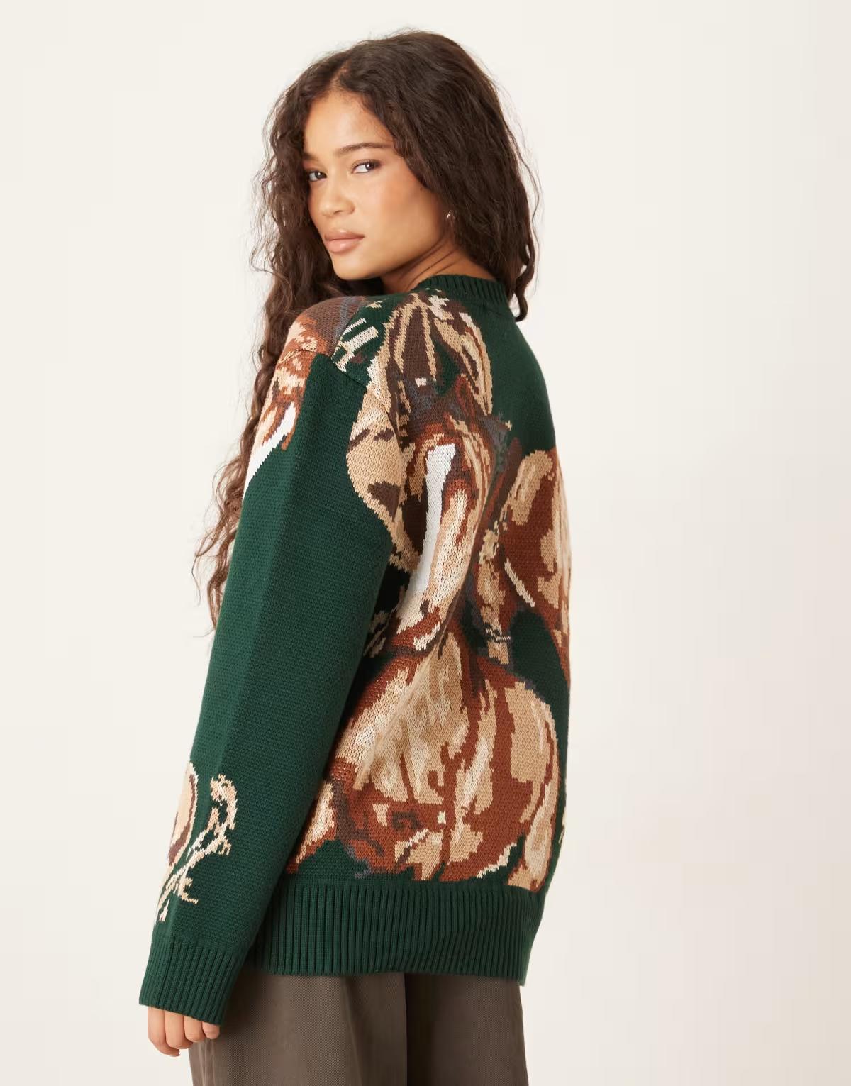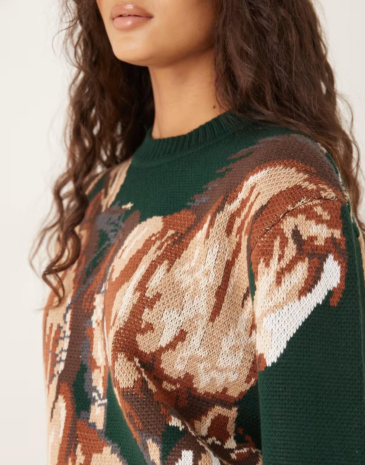 Knit pattern featuring placement graphic design on front, back and sleeves