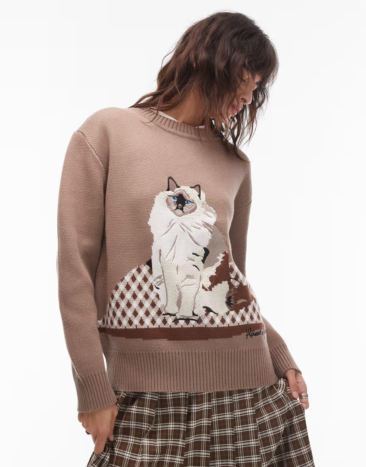 House of Sunny ragdoll cat crew neck jumper in taupe