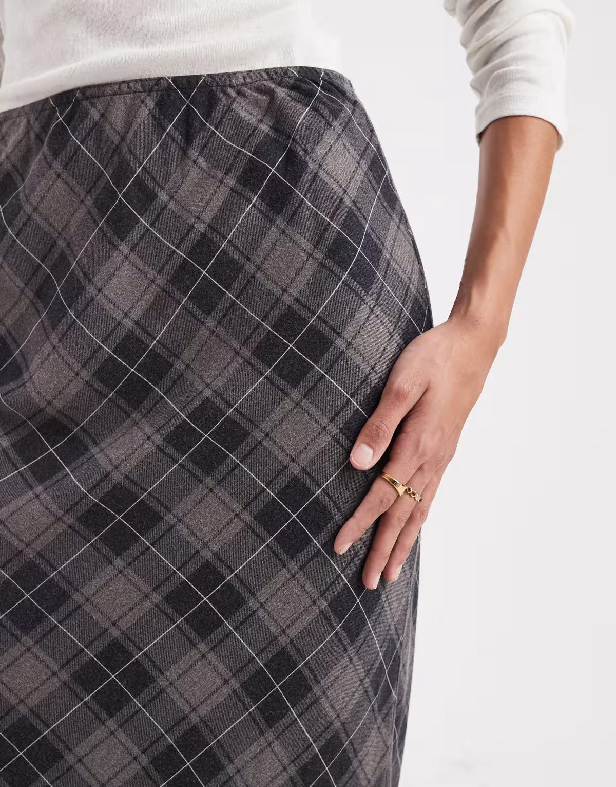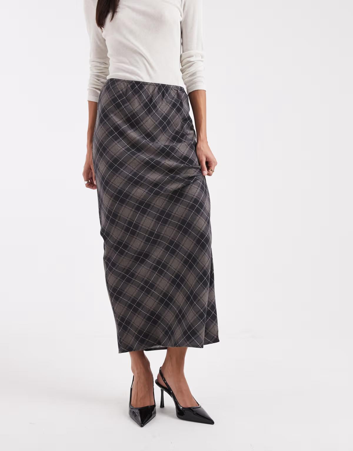 ASOS DESIGN bias maxi skirt in brown brushed check