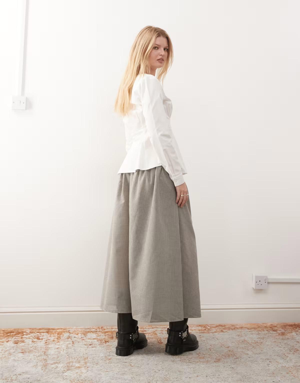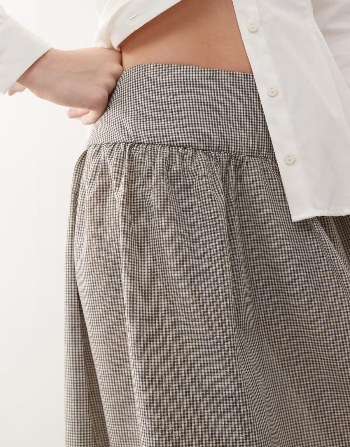 Reclaimed Vintage full circle skirt with drop waist in brown gingham