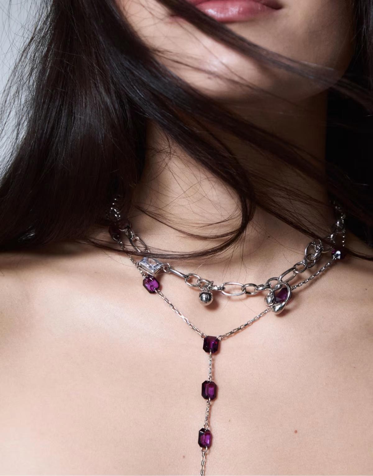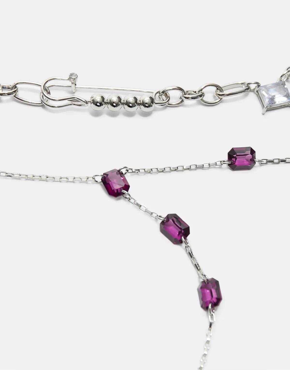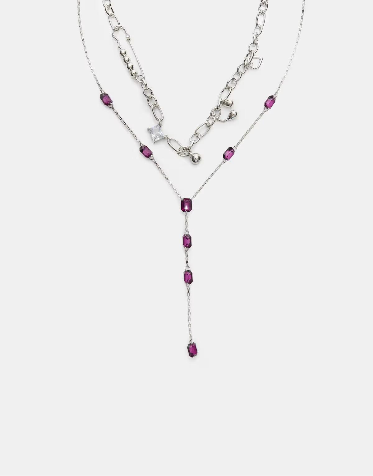 Stradivarius Set of 2 rhinestone lariat necklaces in grey