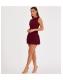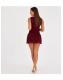 QUIZ Dark Red Glitter Mesh Frill Mini Dress