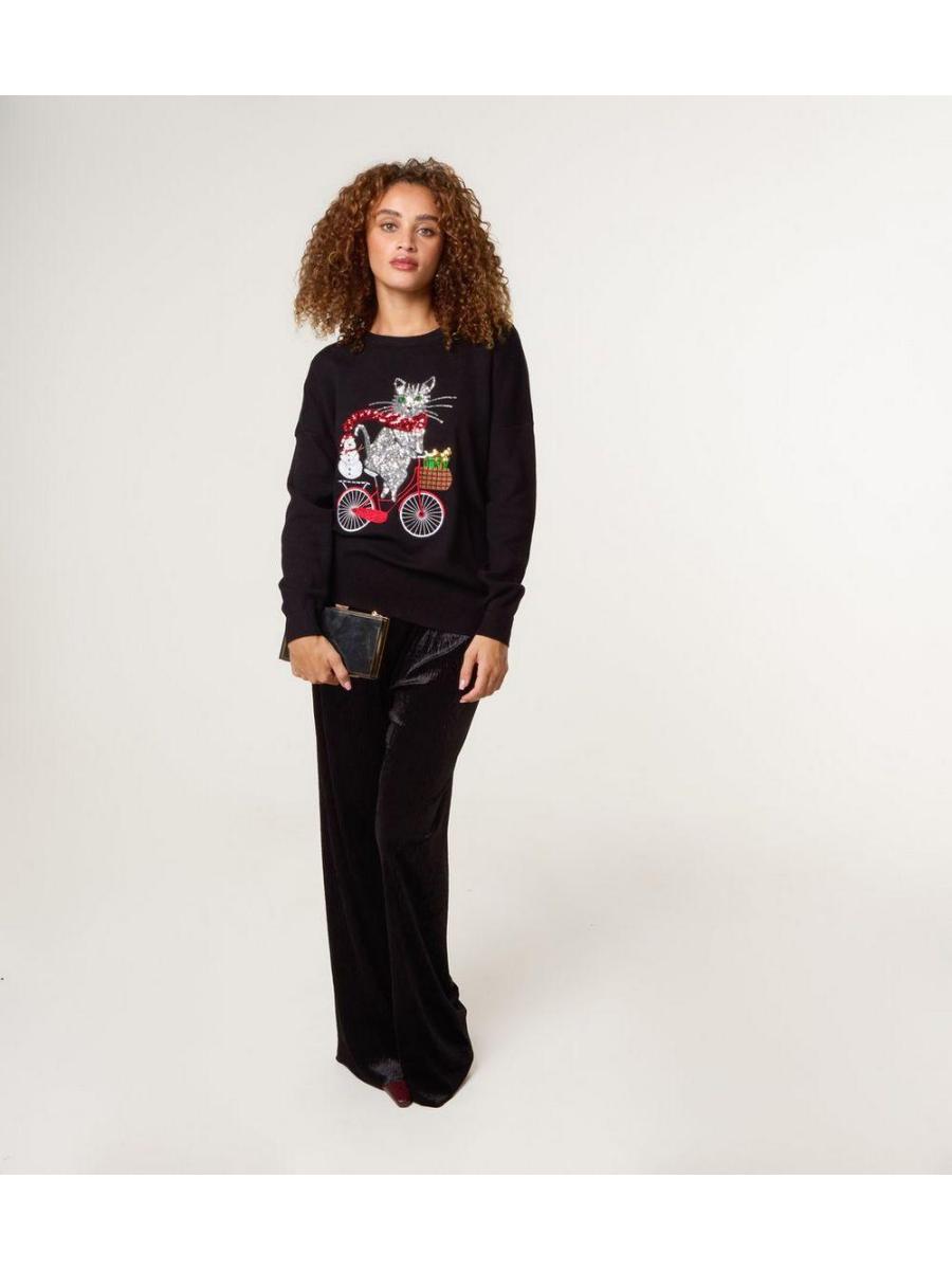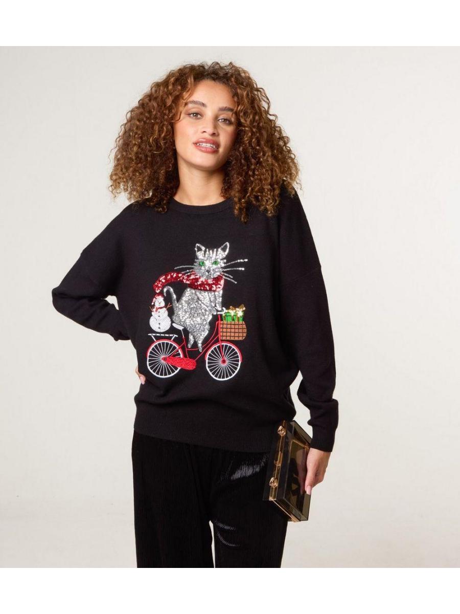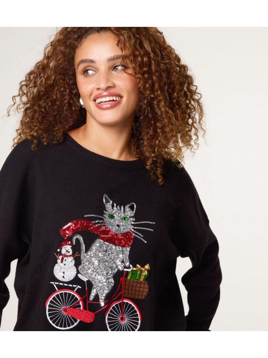Blue Vanilla Black Christmas Sequin Cat Jumper