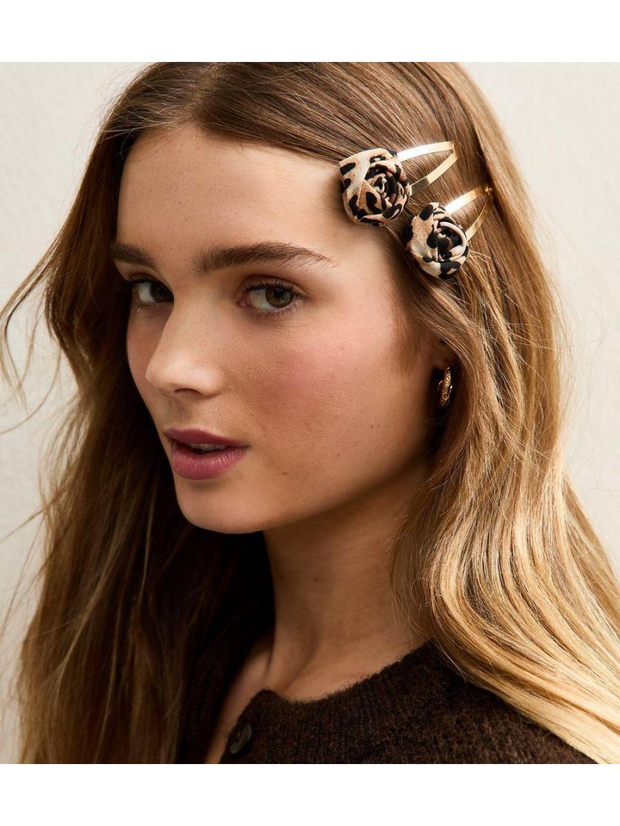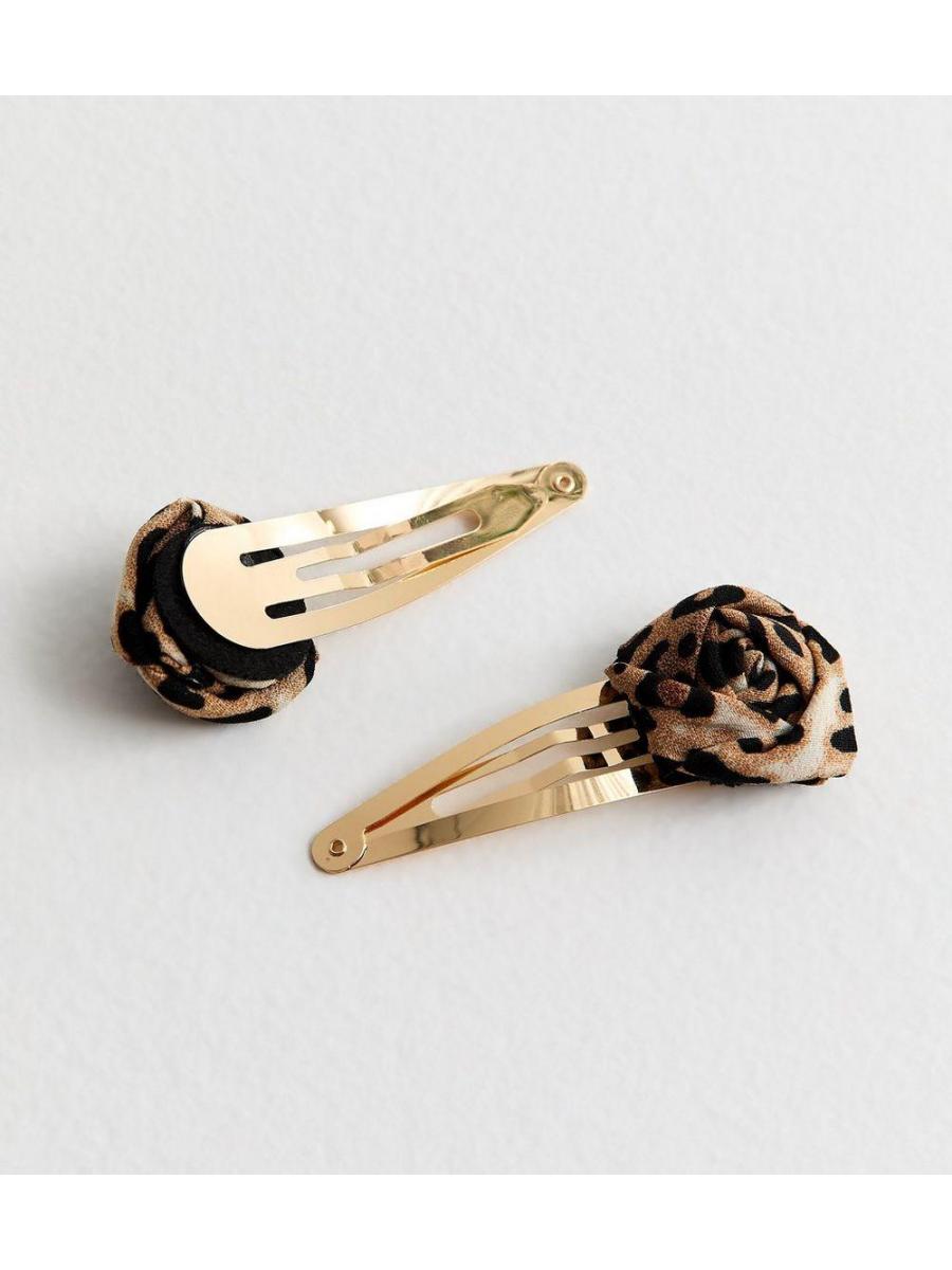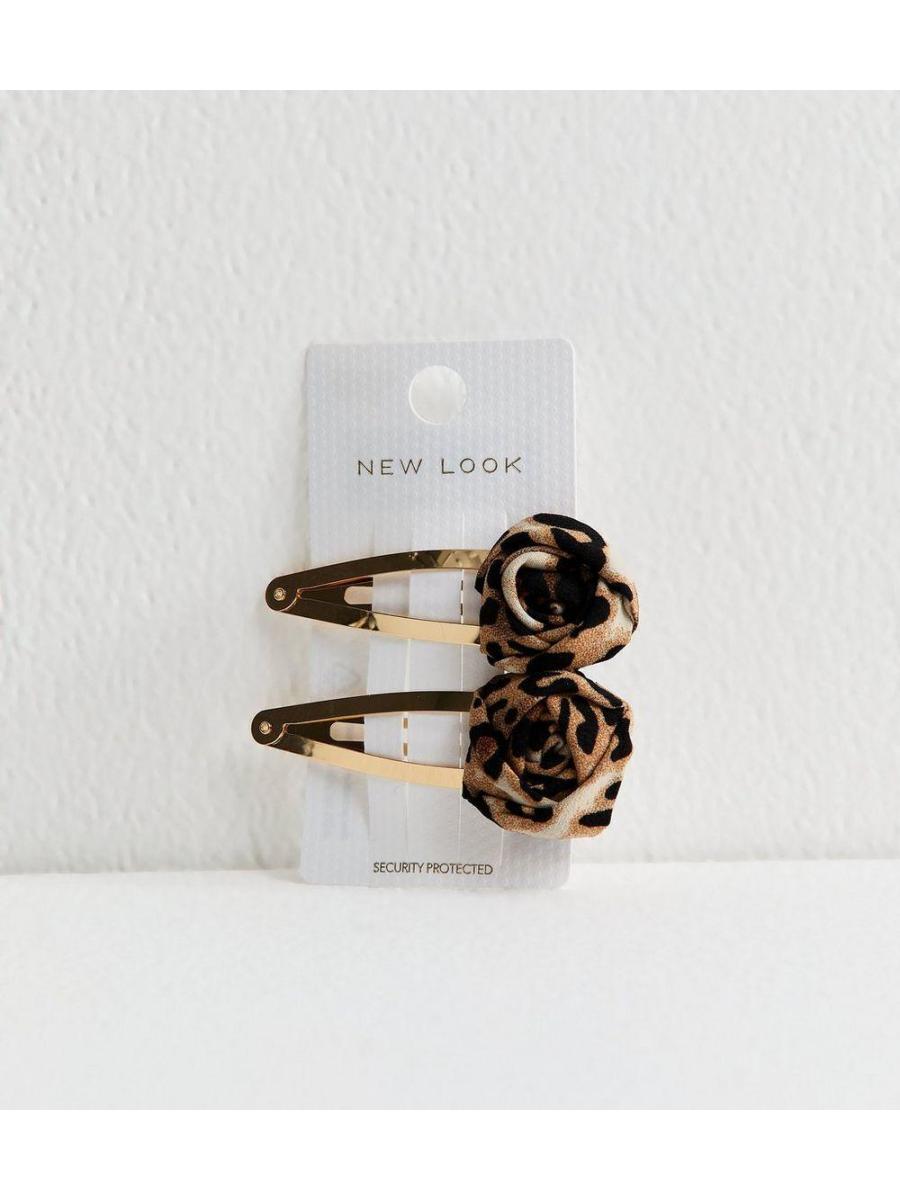 Pack Of 2 Leopard Print Flower Hair Slides