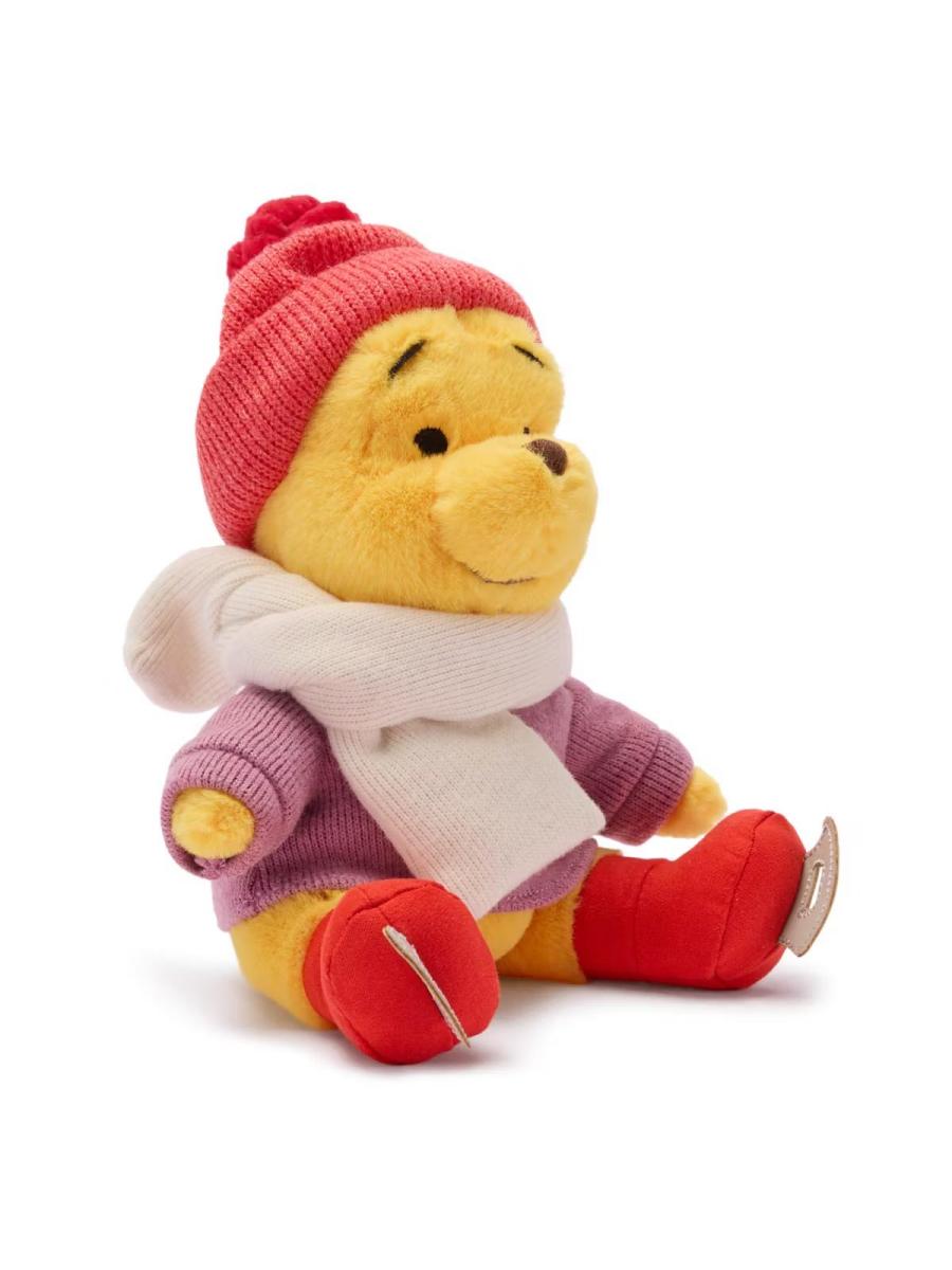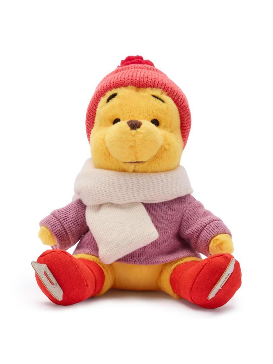Winnie the Pooh wears hat, scarf, jumper and ice skates