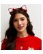 Bright Red Christmas Bow Holly Cat Ears Headband