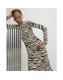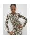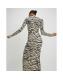 Beige Zebra Print Ribbed Midi Dress