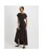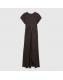 Brown Short Sleeve Cinched Waist Maxi Dress