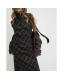 Brown Check Tie Neck Midi Dress