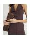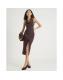 Brown Pinstripe Halter neck Button Midi Dress
