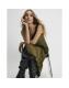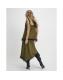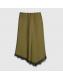 Khaki Satin Lace Trim Midi Skirt