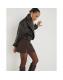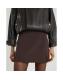 Brown Faux Leather Split Hem Mini Skirt