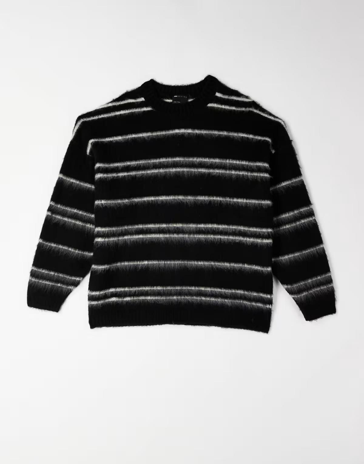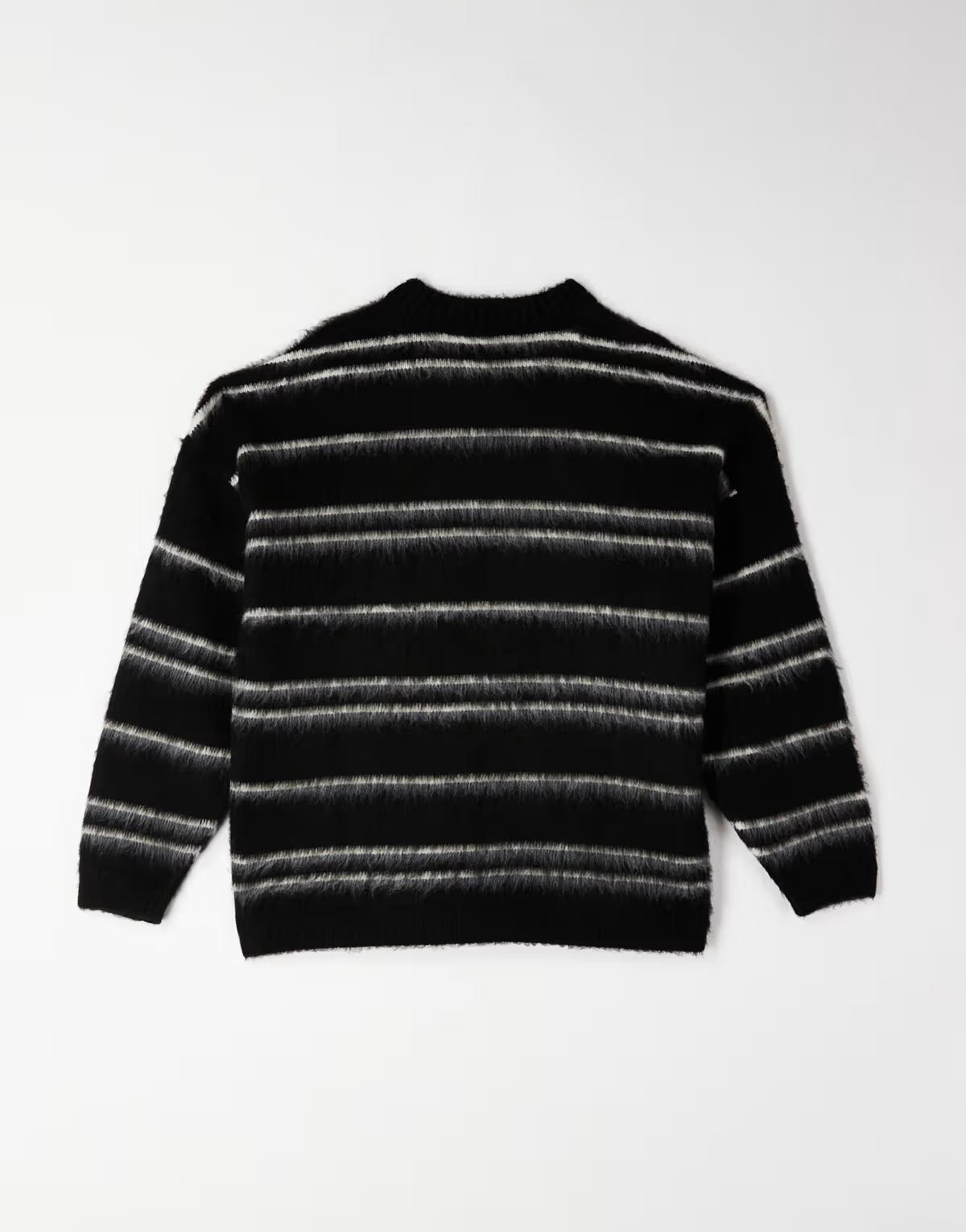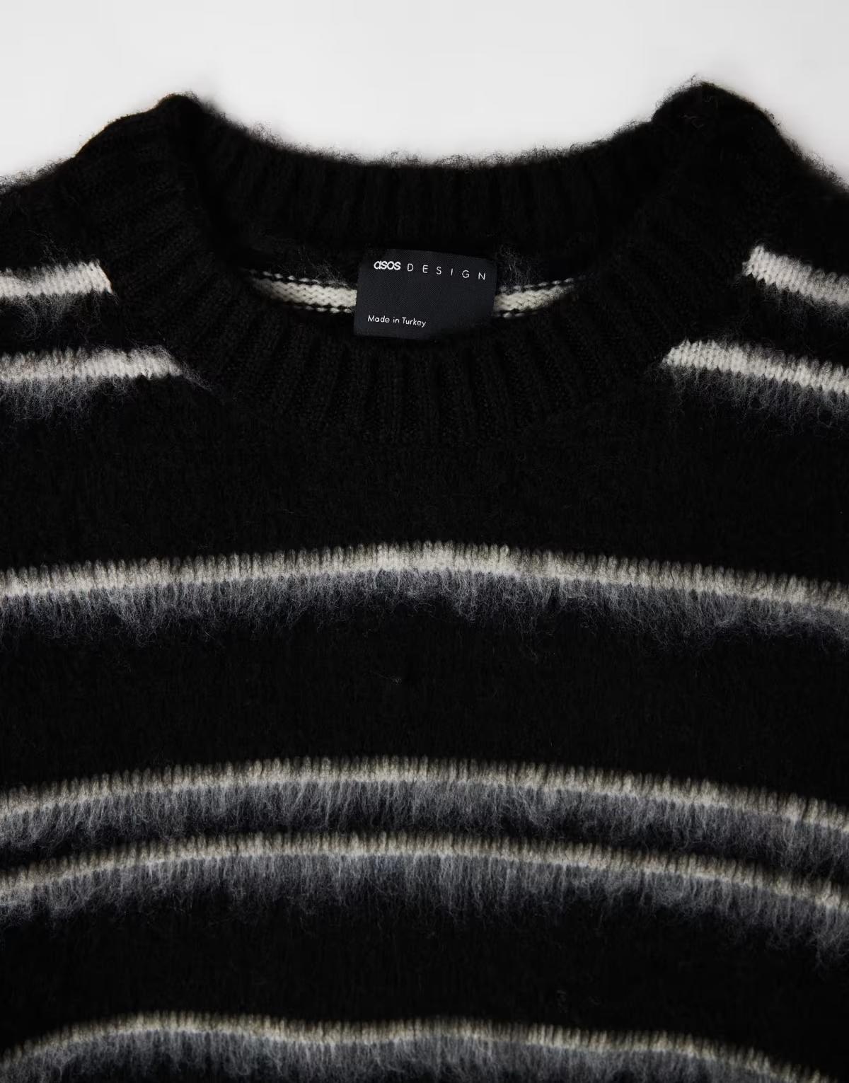 ASOS DESIGN oversized super fluffy knitted jumper in black and ecru stripes