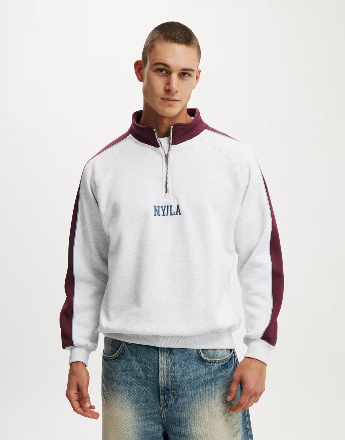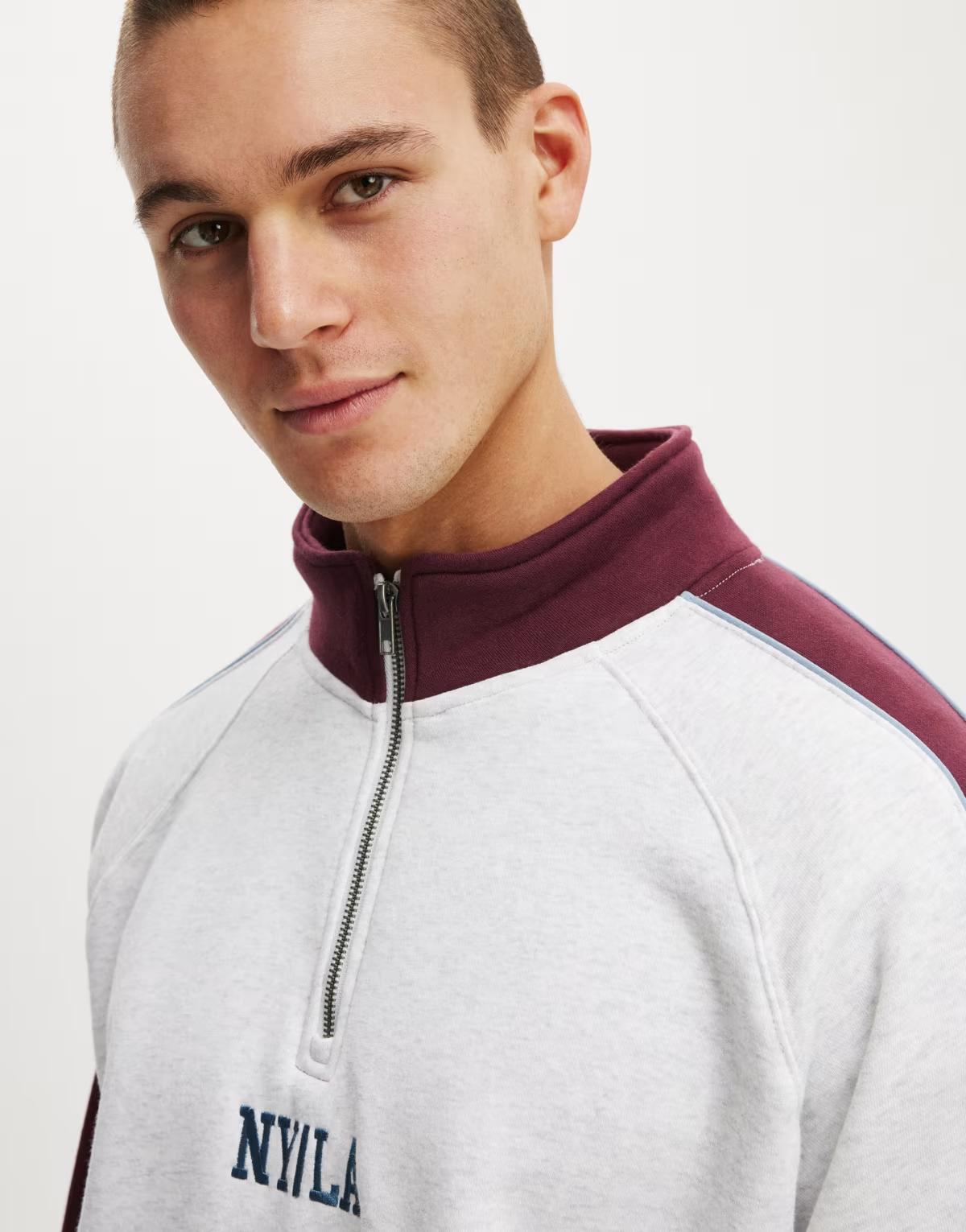 Cotton On Graphic 1/4 zip fleece in grey