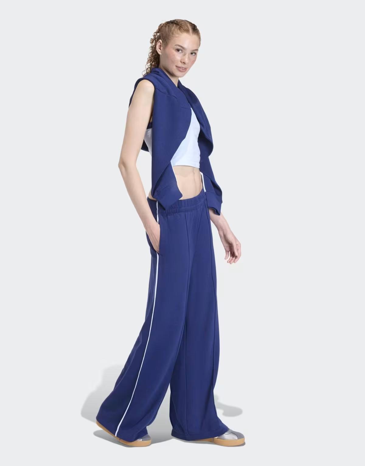 adidas performance Seasonal essentials colourpop pants with embroidered graphic in dark blue / white
