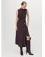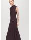 Diseño midi. Diseño evasé. Cuello perkins. Sin mangas. Detalle metálico. Detalle drapeado en la cintura. Cierre de cremallera en la parte posterior. El color burdeos es exclusivo online