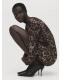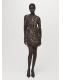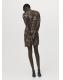 Diseño corto. Diseño entallado. Estampado animal print. Estampado de leopardo. Cuello redondo. Manga larga. Detalle fruncido en la cintura. Cierre de cremallera en la parte posterior. Forro interior. Esta prenda pertenece a nuestra colección de fiesta y evento, diseñada para elevar tus looks en ocasiones especiales