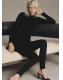 Tejido de punto de canalé. Diseño corto. Diseño evasé. Cuello redondo. Manga larga. Sin cierre