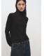 Tejido de punto fino. Diseño recto. Cuello vuelto. Manga larga. Sin cierre