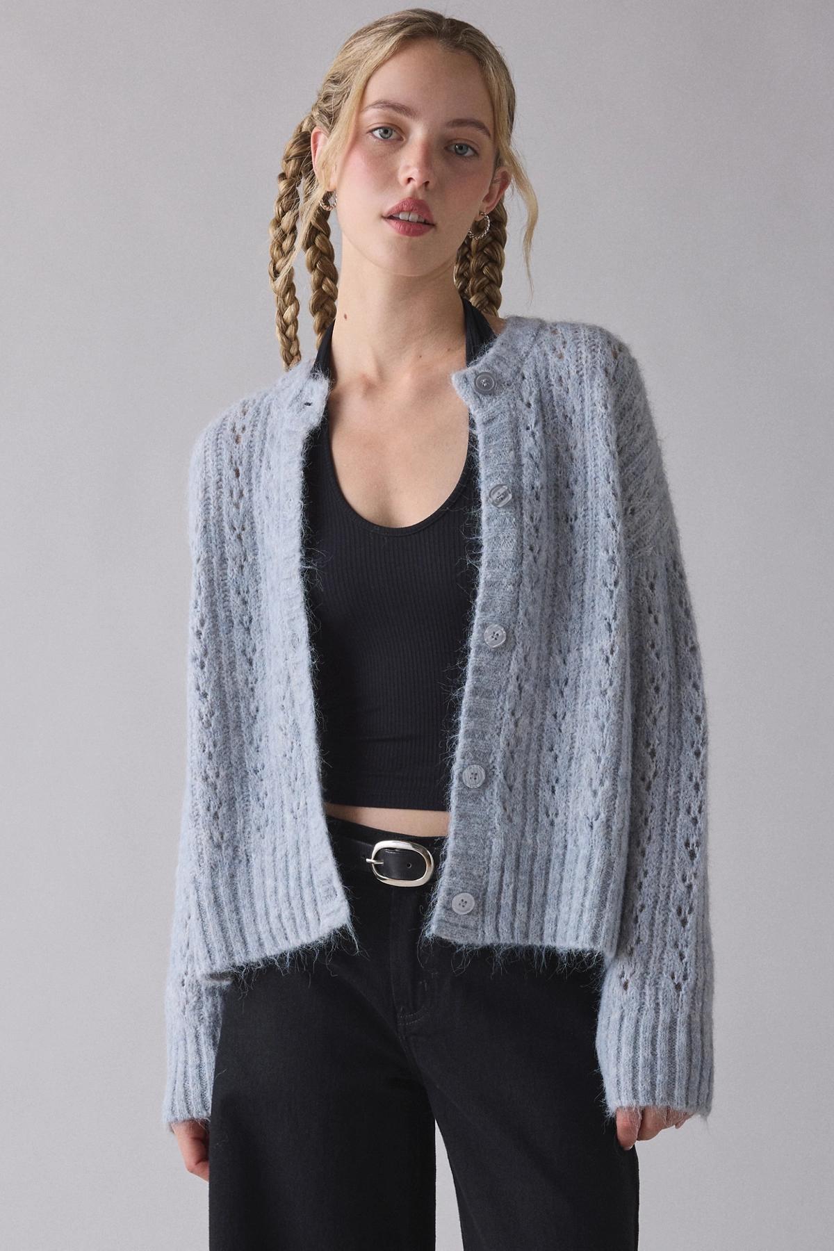 Kimchi Blue Becca Brushed Pointelle Knit Oversized Cardigan
