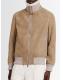 皮革&剪羊毛飞行员夹克 - Nocciola - 男士 - Brunello Cucinelli - 正面拉链开合.