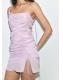 Tejido con acabado satinado. Diseño corto. Diseño entallado. Cuello asimétrico. Espalda abierta. Drapeado en la espalda. Tirantes finos. Fruncido lateral con lazo. Detalle de abertura lateral en el bajo. Sin cierre. Forro interior. Colaboración SUPRIYA LELE X MANGO. En colaboración con la reconocida diseñadora indio-británica, Supriya Lele x Mango se inspira en un paisaje onírico y evocador, donde fantasía y realidad se entremezclan. Con siluetas sensuales y fluidas, la colección evoca la calidez y la ligereza de las noches de verano en la ciudad