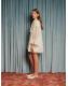 Golden dots shimmer like fairy dust across the Fanciful Mini Dress. With soft chiffon draping and a tie-neck finish, it’s a scene straight from a daydream.